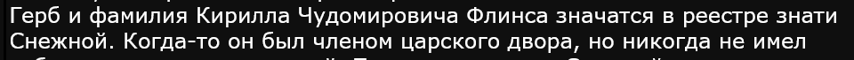 >>5528169 Добро пожаловать. Добро пожаловать в Снежную. Сами вы её выбрали или её выбрали за вас, это лучший регион из оставшихся. Я такого высокого мнения о Снежной, что решил разместить своё правительство здесь, в Заполярном дворце, столь заботливо предоставленной нашими покровителями. Я горжусь тем, что называю Снежную своим домом. Итак, собираетесь ли вы остаться здесь, или же вас ждут неизвестные дали, добро пожаловать в Снежную.