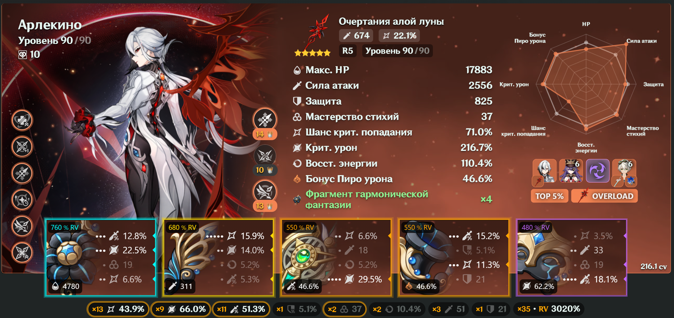 Усиление от созвездий — ещё больше урона через Lunar-Bloom и снижение сопротивления врагов.