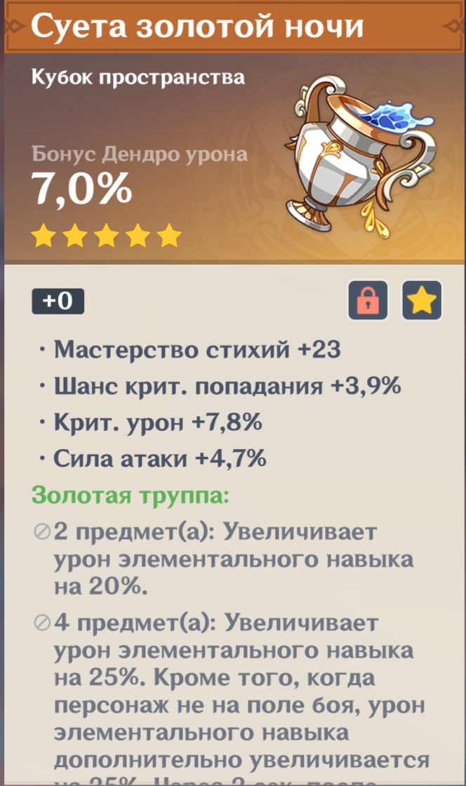 В Shadow Dance: Verdant Dew копится на 25% быстрее, враги рядом получают -20% Dendro RES.
