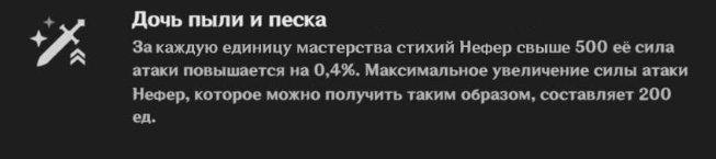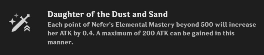 Daughter of the Dust and Sand: за каждое МС выше 500 → +0,4 ATK (до 200).