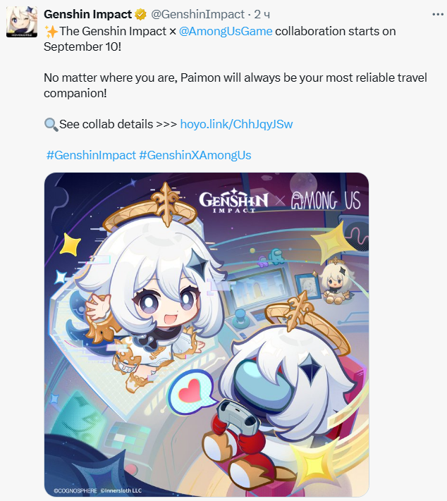 >Недавно авторы «социальной мафии» Among Us заинтриговали поклонников Genshin Impact. Они опубликовали в социальной сети изображение с теню, которая подозрительно напоминает персонажа из игры miHoYo (HoYoverse).