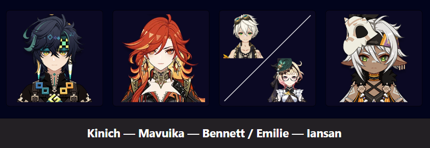 >>5530495 А вода в команде обязательно, так как нужны блумы. Лаума тоже обязательна, так как сильно бафает. Итого свободно два слота, которые должны быть не-лунными персонажами, и минимум один из них - обязательно гидро.