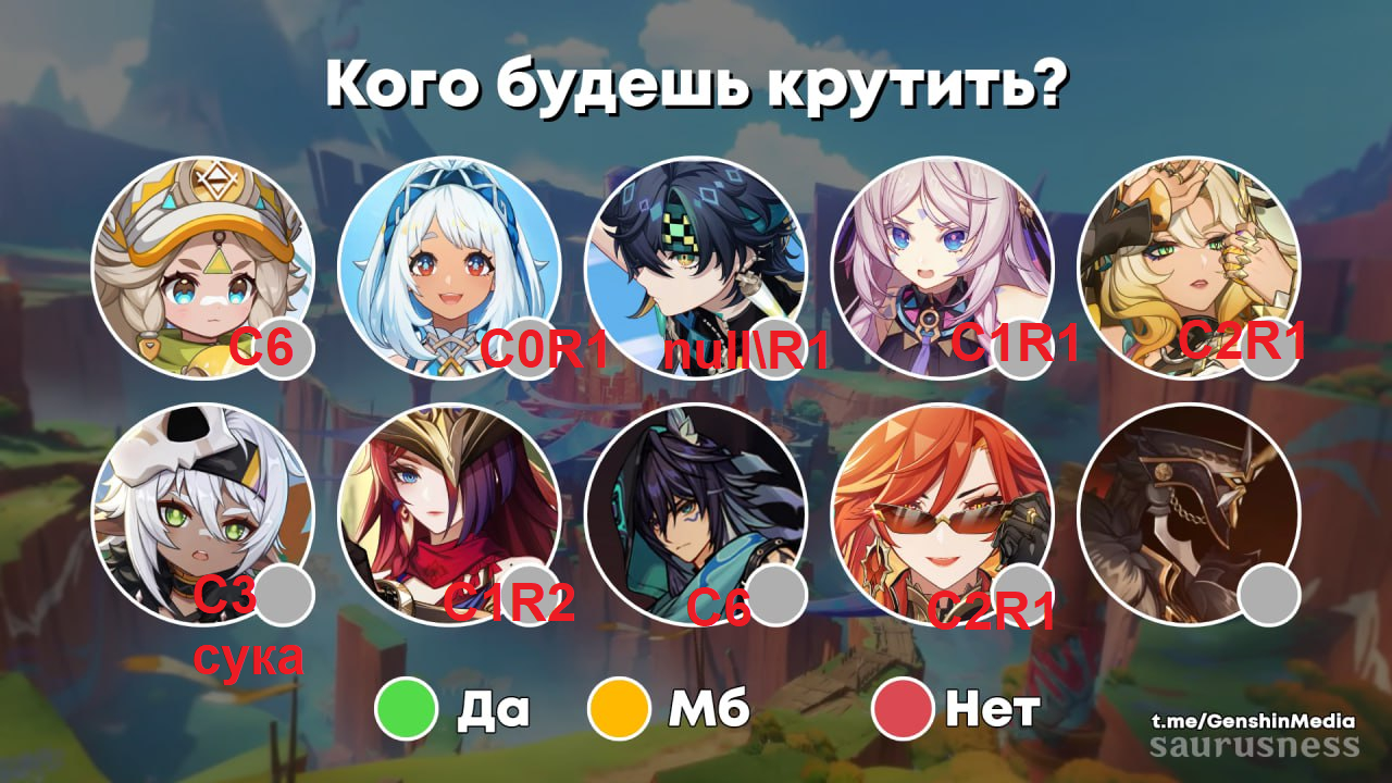 Из не-натлана когда-нибудь выкручу Сяо и Кли, а также жду Дилюка.