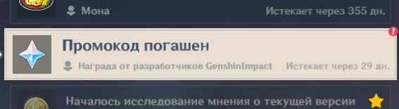 ✦ Промокоды https://genshin-impact.fandom.com/wiki/Promotional_Codes