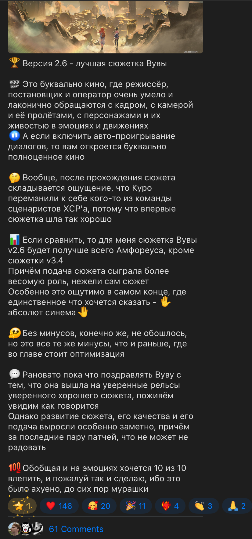 >>5532418 Я думаю, что на телебонах как раз ахуенно играется, потому что основной доход именно с них. На моем дешманском флагмане было даже очень неплохо на низких настройках. А вообще в момент релиза все отмечали, что вува прям какая-то дерганная. Особенно на фоне геншина. А в последнем обновлении это еще сильнее стало заметнее.