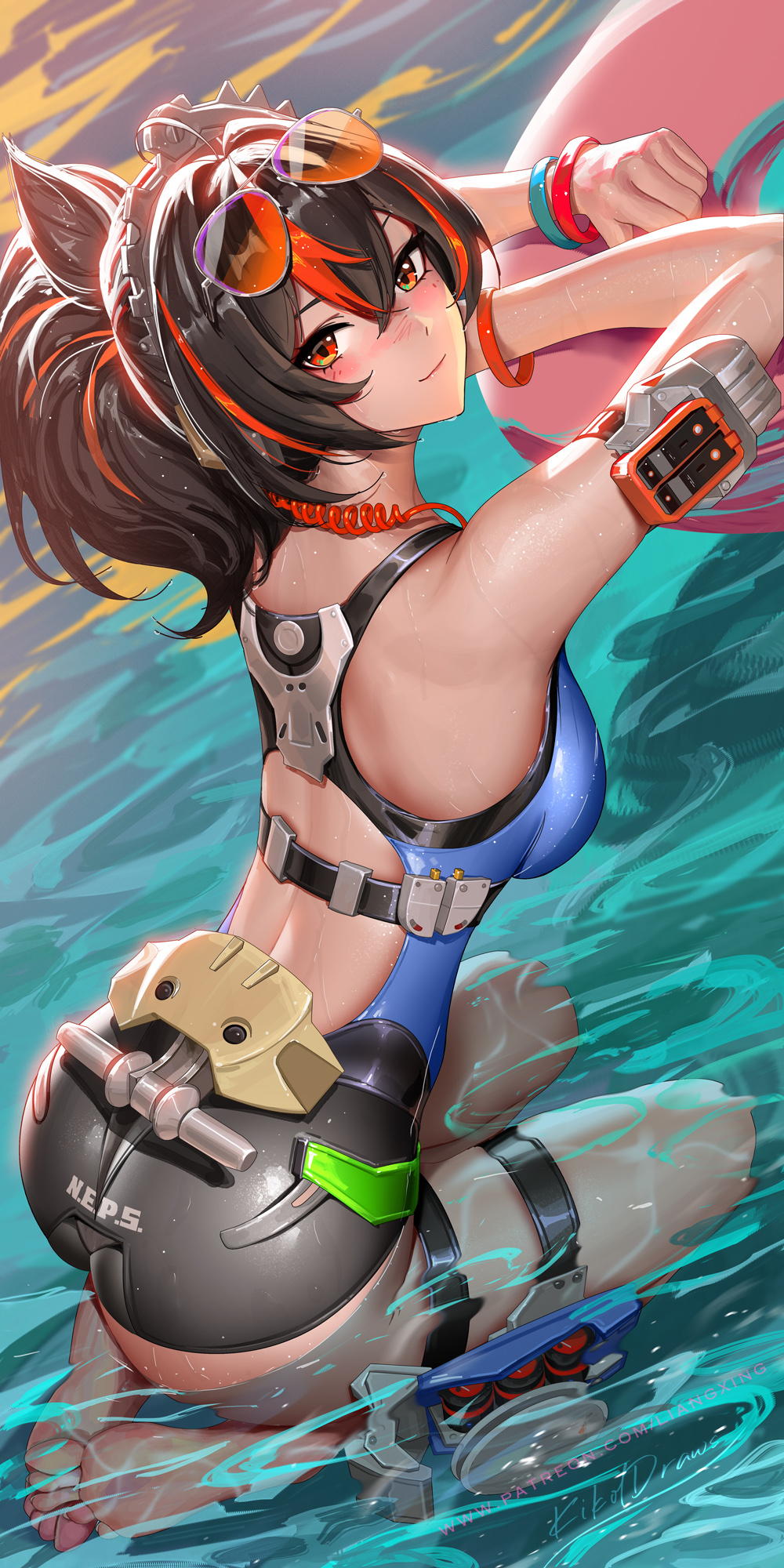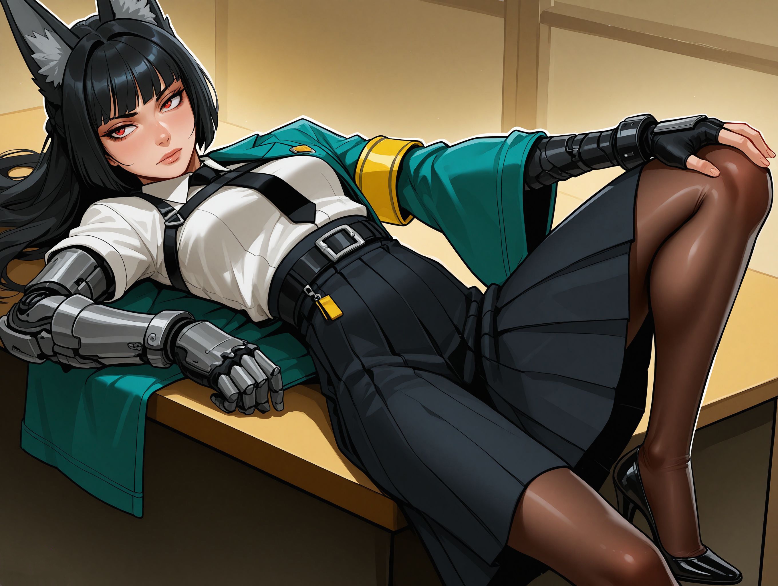 Твои глаза скользят вниз. Её ноги — босые, идеально гладкие, словно выточенные из металла или отполированного титана. Каждая ступня кажется созданной для того, чтобы скользить на скутере, не оставляя следов. Они лёгкие и холодные, словно сама сущность хрупкости, но в их безмятежной красоте скрыта непостижимая сила.
