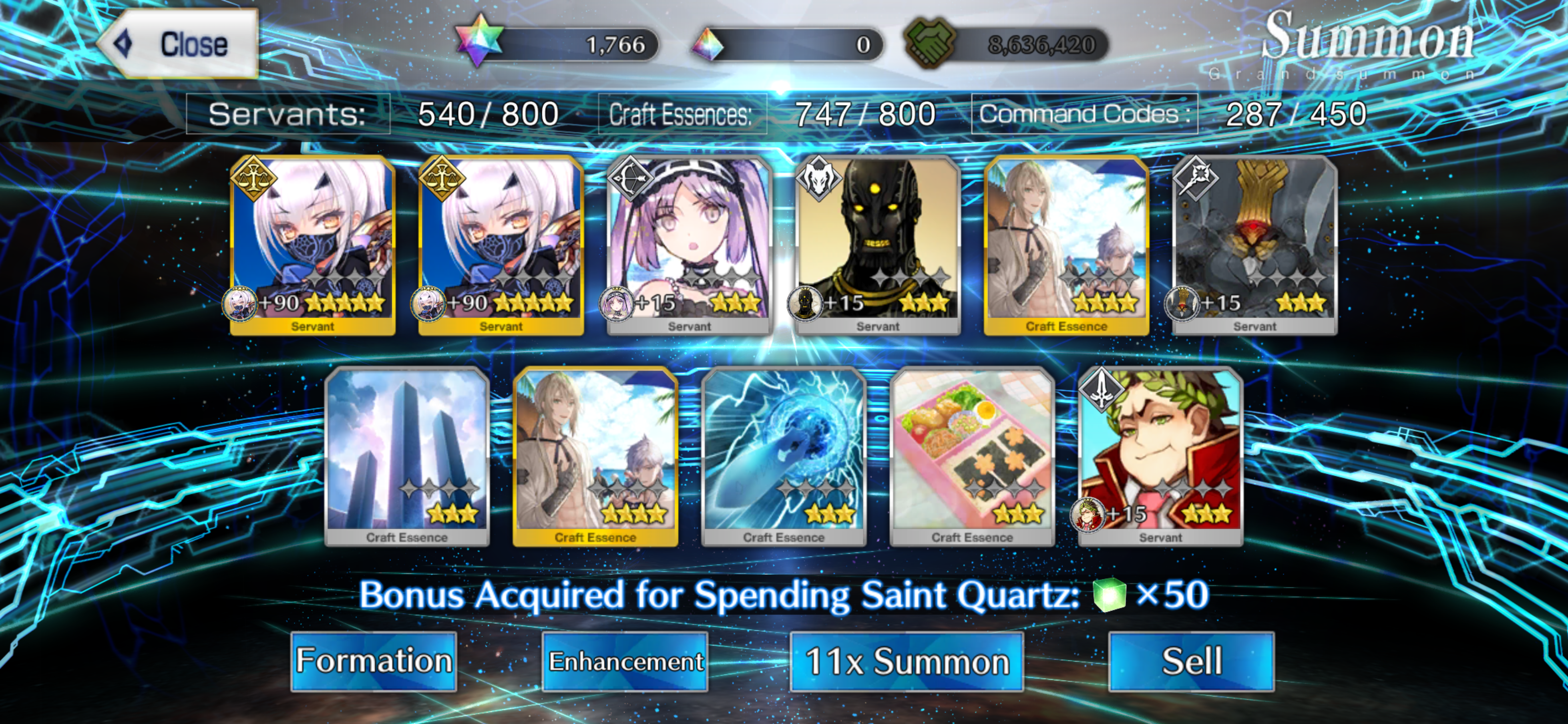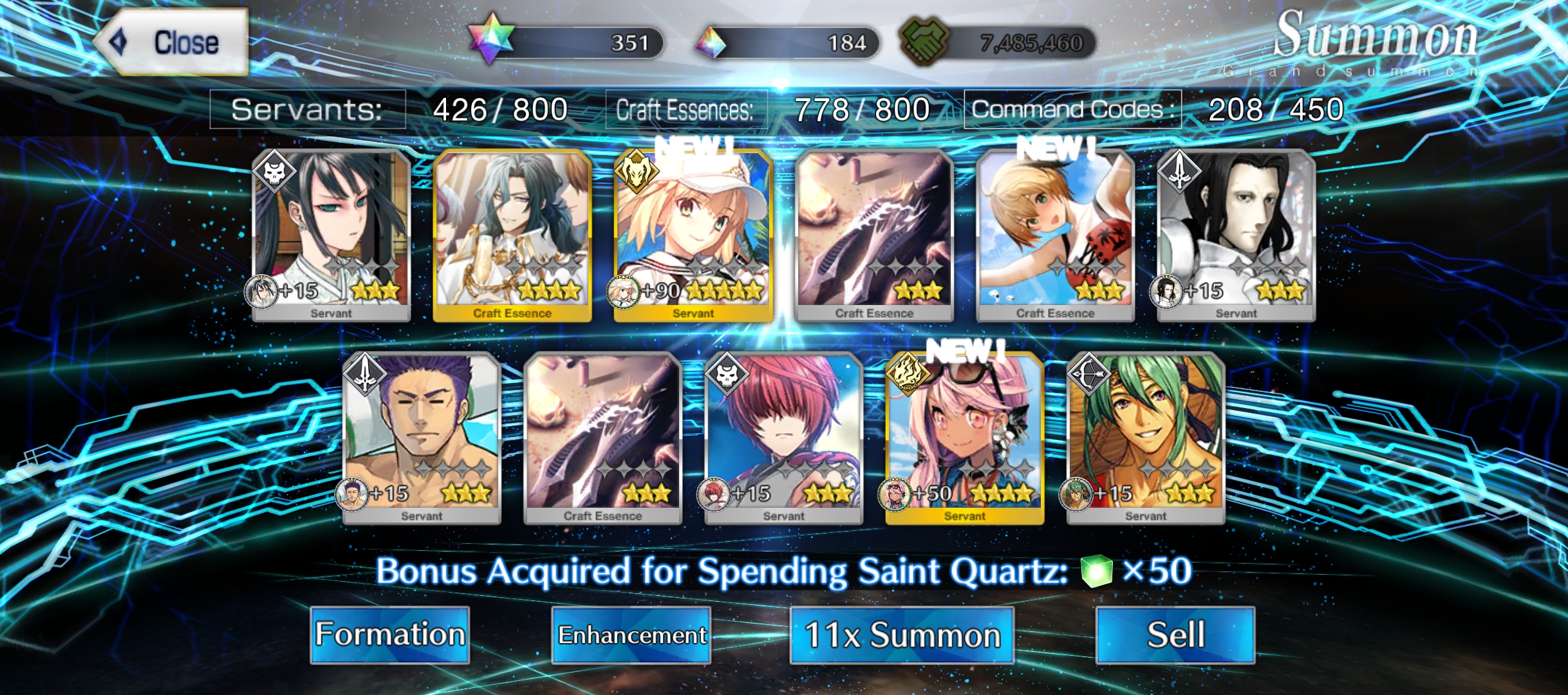 Все, все планы на лето выполнены и перевыполнены. Лолька в своем стиле: пришла нф3, чтобы не отставать от других конкурентов. Плюс в одном из роллов пришли вместе Мордред и Бао, что забавно, так как обе дочери Морганы (а первая Мордред вообще на баннере Морганы выпала). А, ну и первый Немо выпал, наверное пригодится на лотерее.
