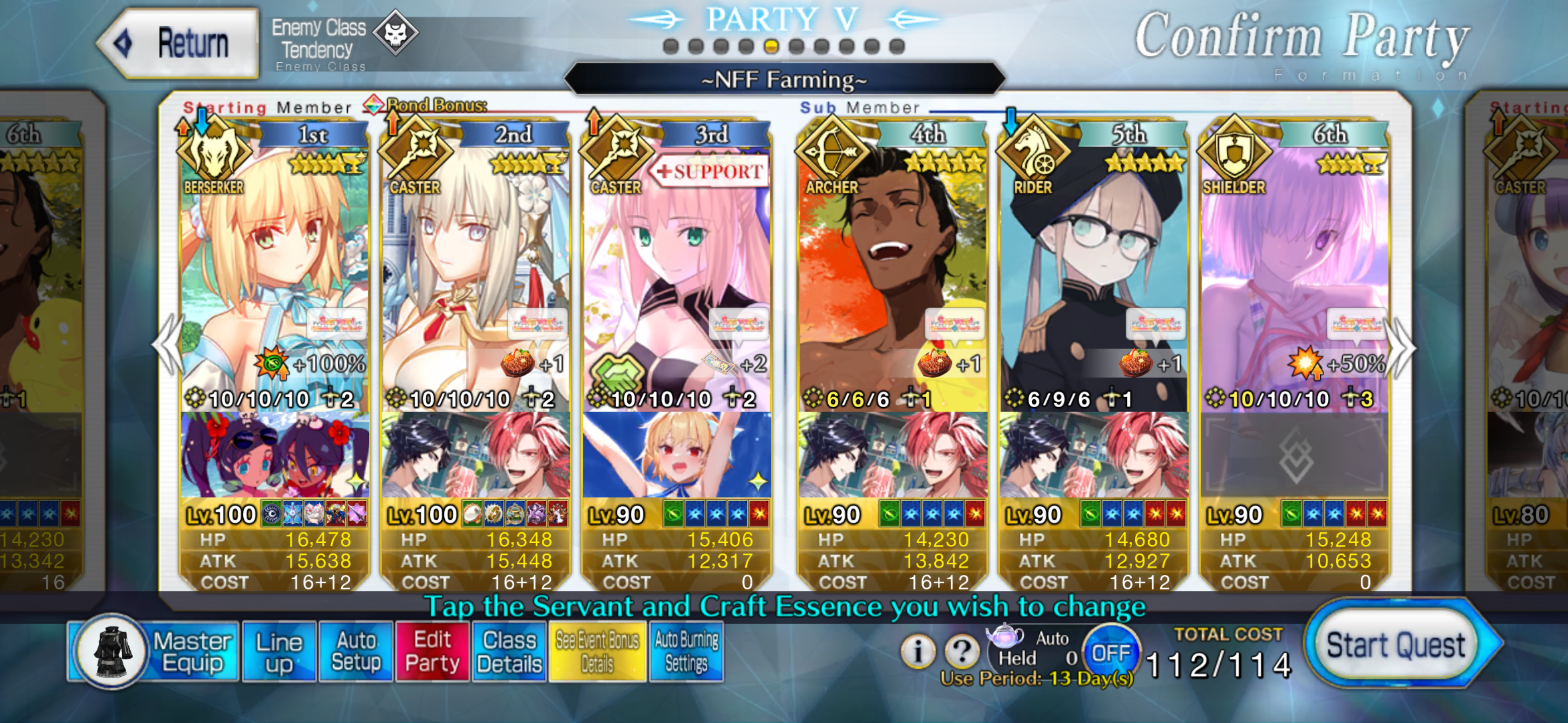 Несложная 90++, можно и в 6 слотов сделать, но нахуй и похуй, это ж свапать надо. С нф1 Бакатурией будут проблемы, а вместо Морганы в купальнике можно и обычную взять, правда Бакатурию она забаффает меньше. >>5280921 С Коянской и Кукулькан выходит одна из самых сильных пачек для фарма: две Коянских, Куку, любая 50% заливка, тот же Вейвер например. Так что по прокачке приоритеты такие: Коянская>Куку>Вейвер (если не забираешь Оберона вот прямо сейчас)>Ози (наверное самый сильный ДД райдер) и забрать бесплатную Жальтер в магазине. По баннерам ждать Кастурию (кастера), и подготовить под это дело Космоиштар и Арчертурию. По СЕшкам важен только ЧГ, калейдоскоп не так силен как раньше, можно спокойно прожить с Сумо и чем-нибудь подобным на 50% заливки.