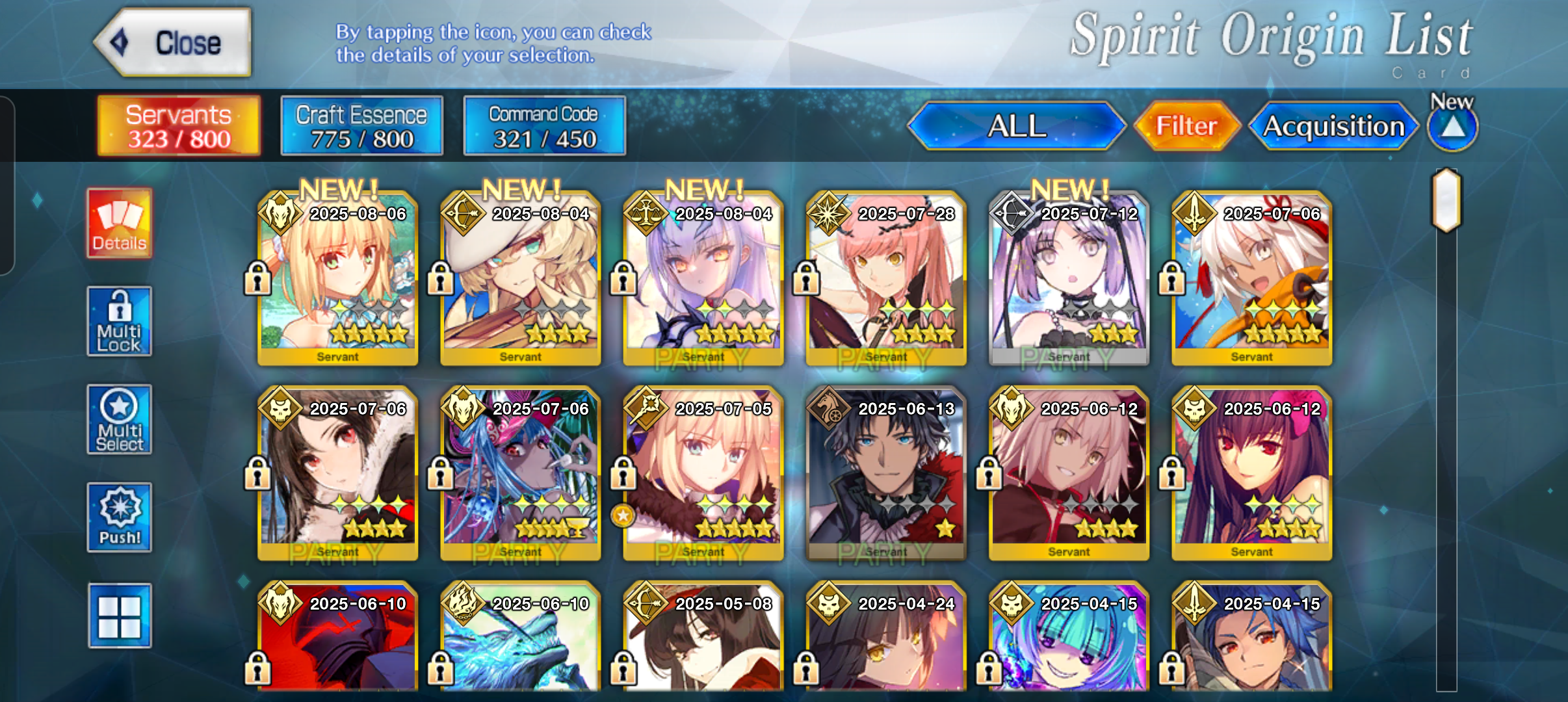 Чот дернуло меня зайти. Обнаружил у себя на старом, но новичковом акке: Чжуге Ляна, Коянскую Света, Ибуки-Доуджи сейбер, Кукулькана, Спейс Иштар, Самую обычную Сейбу, Сейбу Арчер, Озимандию, Широ с катаной (Сенджи Мурамаса), Альтеру сейбер, ну и всяких толковых и бестолковых сервантов 4 по мелочи, а среди сешек и калейдоскоп, и маршала, и бодхисаттву, и формал крафт и еще кучу всего 5, даже в два скрина не уместится. Короче, норм акк, если все-таки захочу играть начать? Есть какие-то советы, кого качать, как тиму собирать? Сюжетка у меня на риме если что.