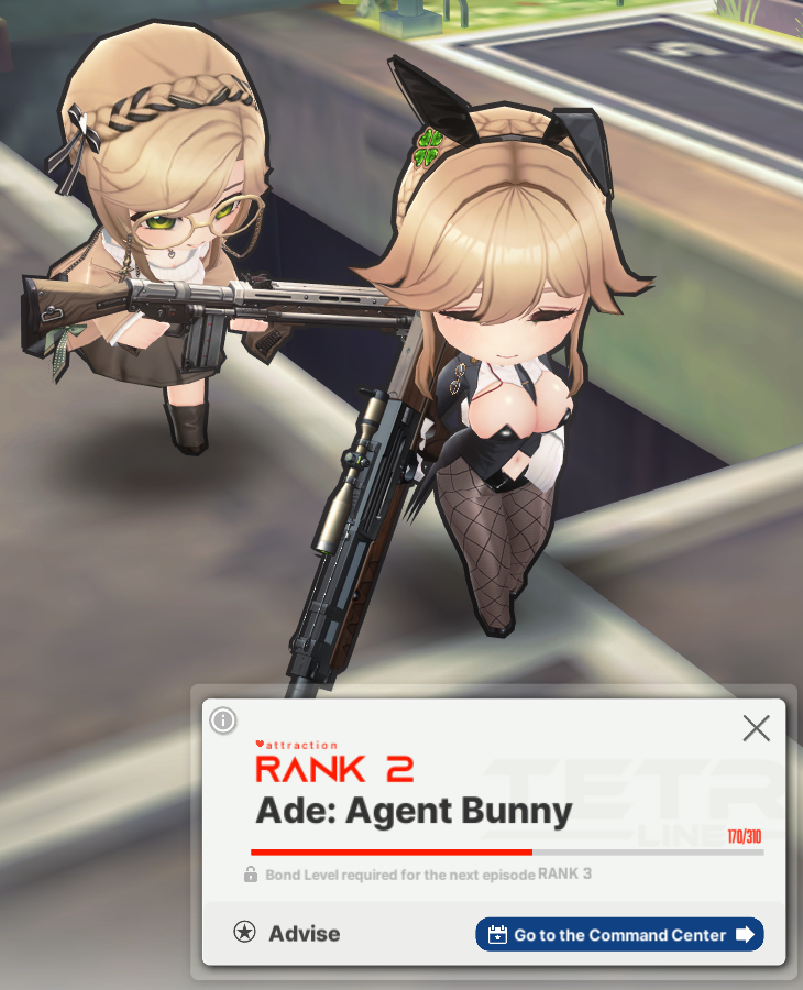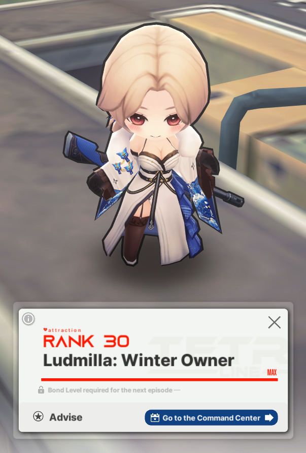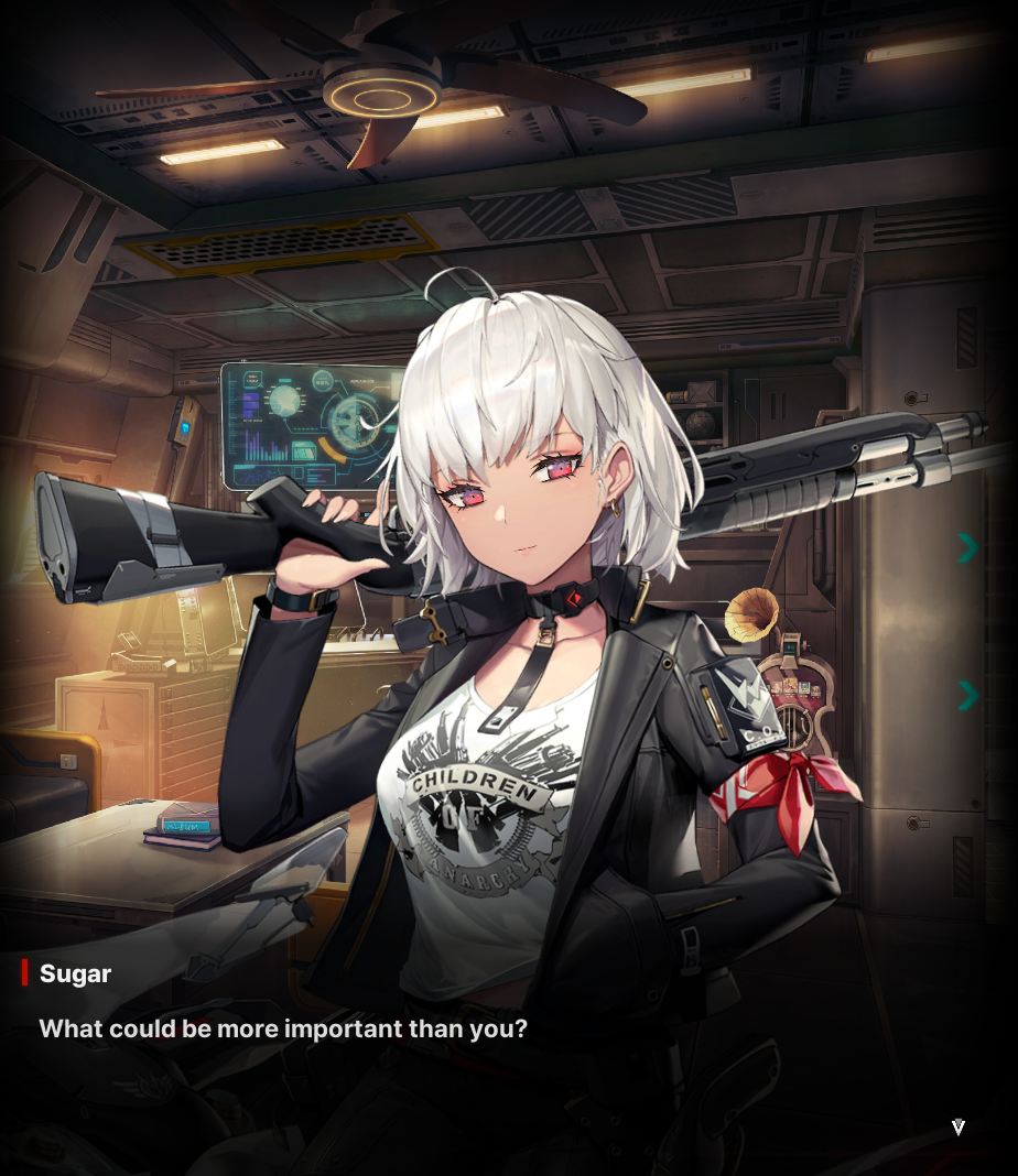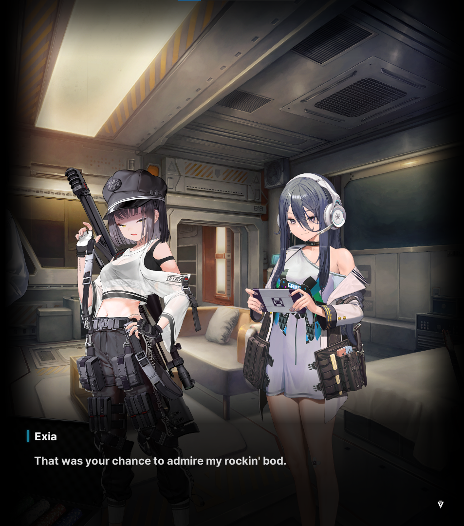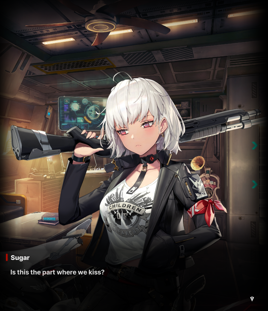 У Тактикал Унфы интересный бонд. На самом деле не происходит ничего особенного, но приятно видеть как изменяется её отношение к нам и отсылки к absolute shit версии бонда.