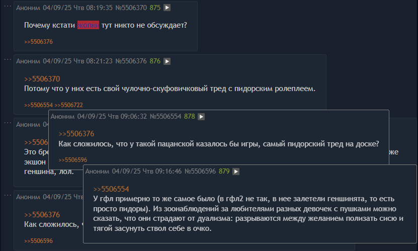 >>5511310 У нас иронично. А я сидел в геншин треде времён Исхода, вот там был неироничный чатик с пидорами и щитпост уровня дотатреда. А челы просто не выкупают. И не мужевозникам про пидорство писать