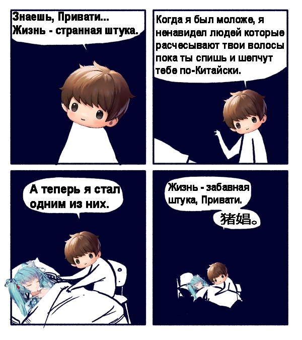 Я, пожалуй, в первый раз забайчусь на такое, потому что заебали. Хентайных сюжетов со разовым перепихоном без поступательного развития отношений и последствий хотят те, кому в целом похуй на персонажа. В общем-то, я лично такого поворота после пляжа и опасаюсь. Что выдадут хуйню, как с Леоной, Брэди и другими эпизодическими никками, выкинув нахуй три года сюжета и два бонда, лишь бы угодить шутникам про кукчейры. Один хуй не угодят, только распалят задор сильнее, шутки будут не про отсутствие секса, а про измены.
