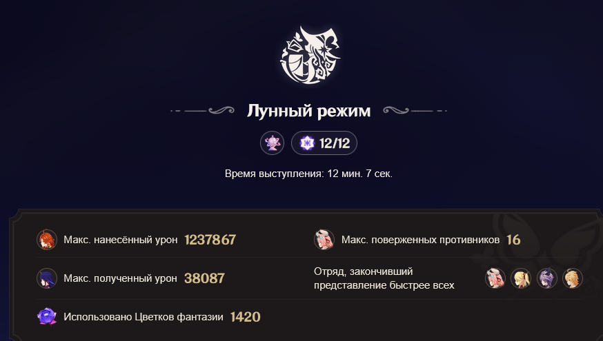Прошел без ретраев. Одну звезду проебал на бобике Но так лень было чето с ним выдумывать, арлю давно слил а без нее одна йома осталась которая за 1 роту не убивает Тем не менее это лучший результат за все лунные театры - до этого было макс 10 звезд Потом клумба выйдет и с ней еще раз перепройду на 12 звезд