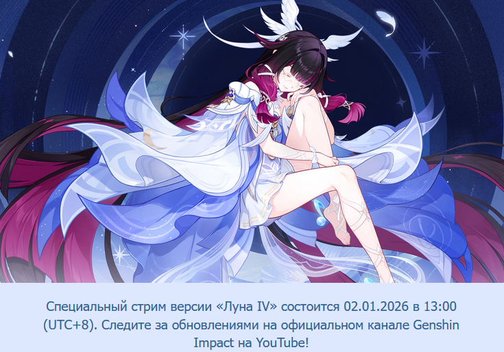 📺 Специальный стрим Genshin Impact «Песня полой луны: Финал - Если однажды зимней ночью путешественник» начнётся 2 января (в эту пятницу) в 08:00 (UTC+3).