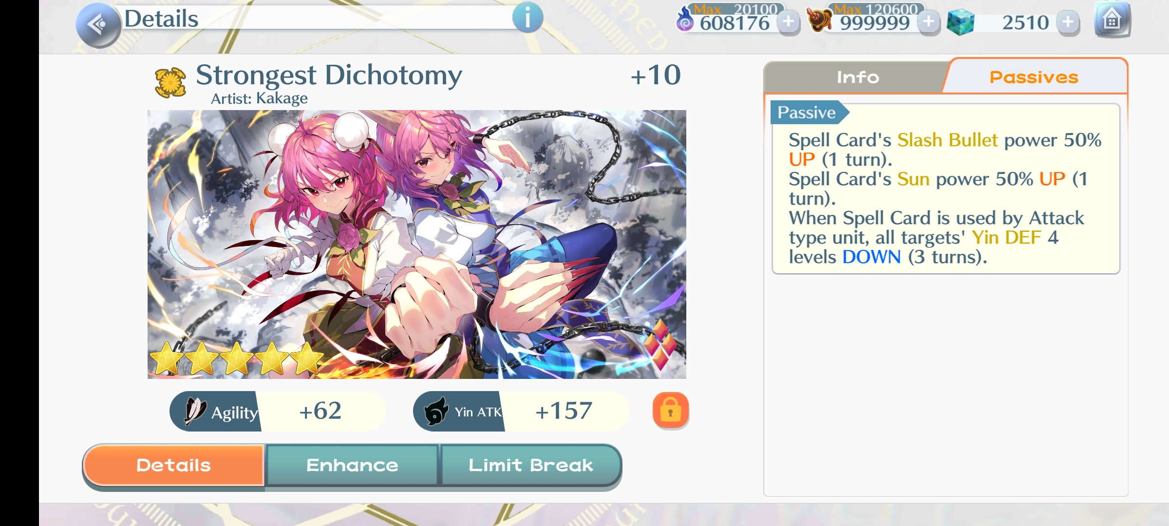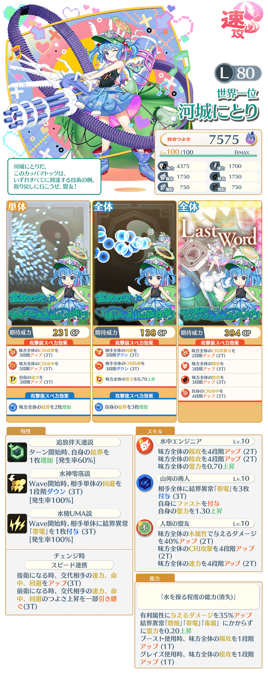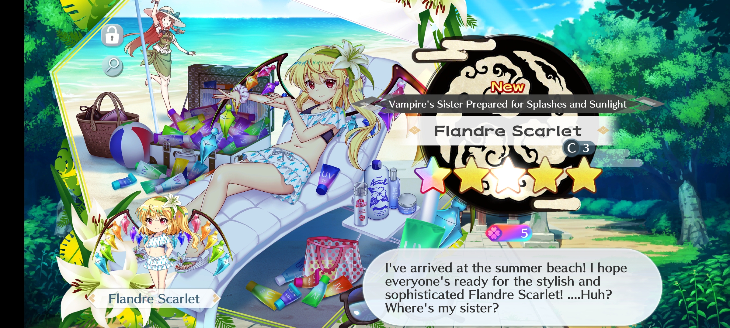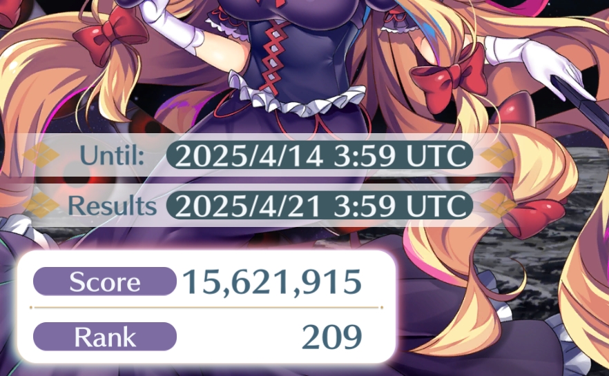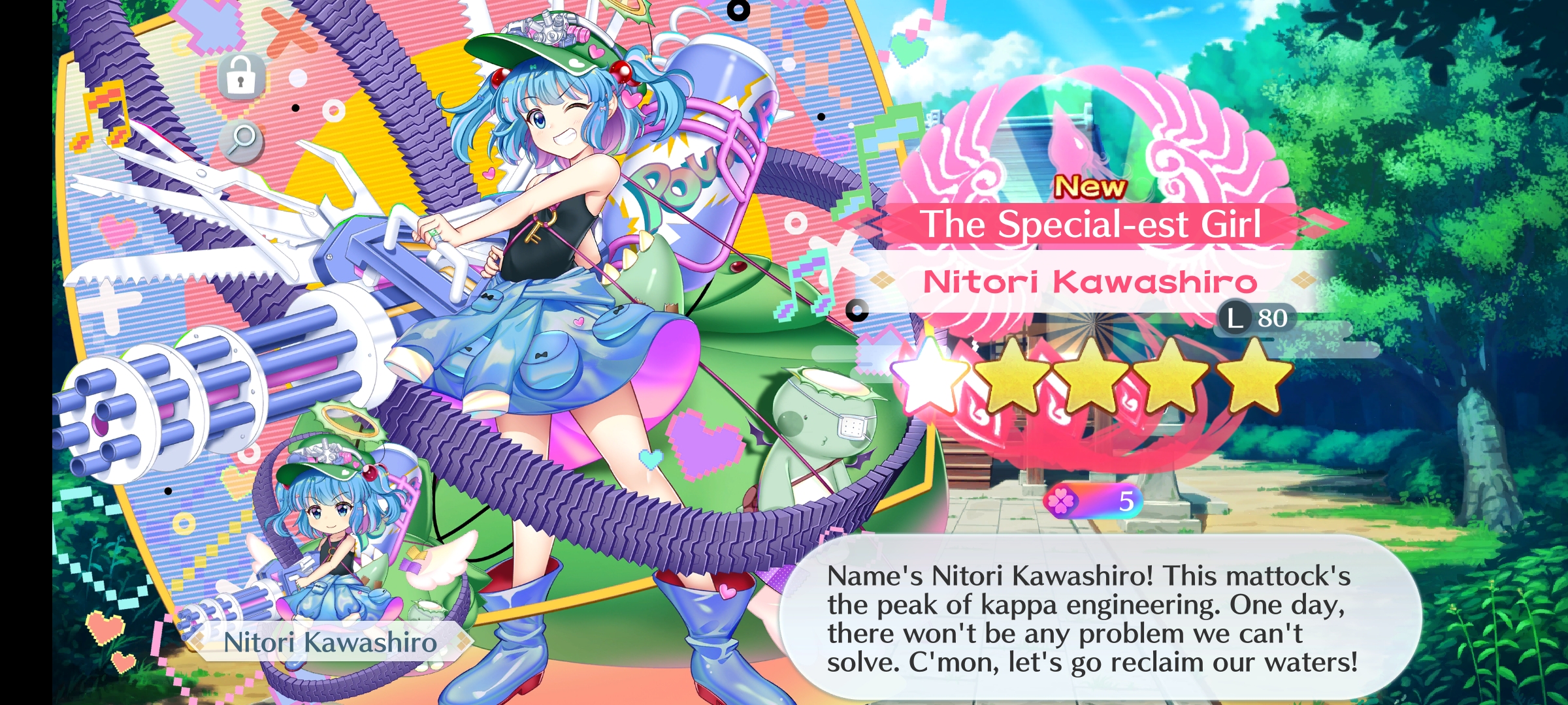 Случайно выпала с годовщинских круток, качнул ради разнообразия элементов (дерева не было, эпик идолов с релик дисками - тоже), а она вообще лютая: ласт ворд быстрее в несколько раз, чем у двух юкари, розовой и синей, гекатии, и вообще всех ласт вордов, что я видел, а я разных персонажей смотрел через помощь в сюжетке.