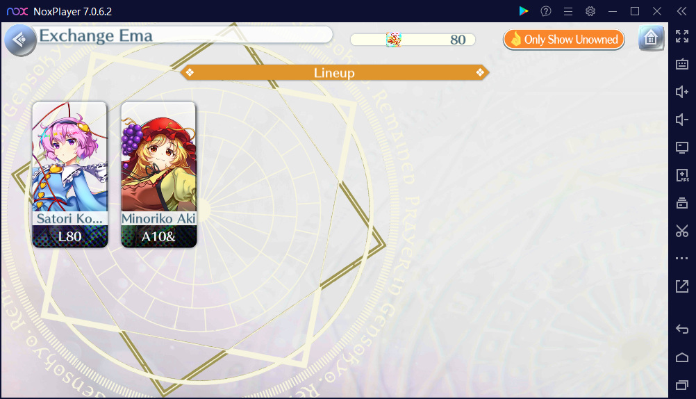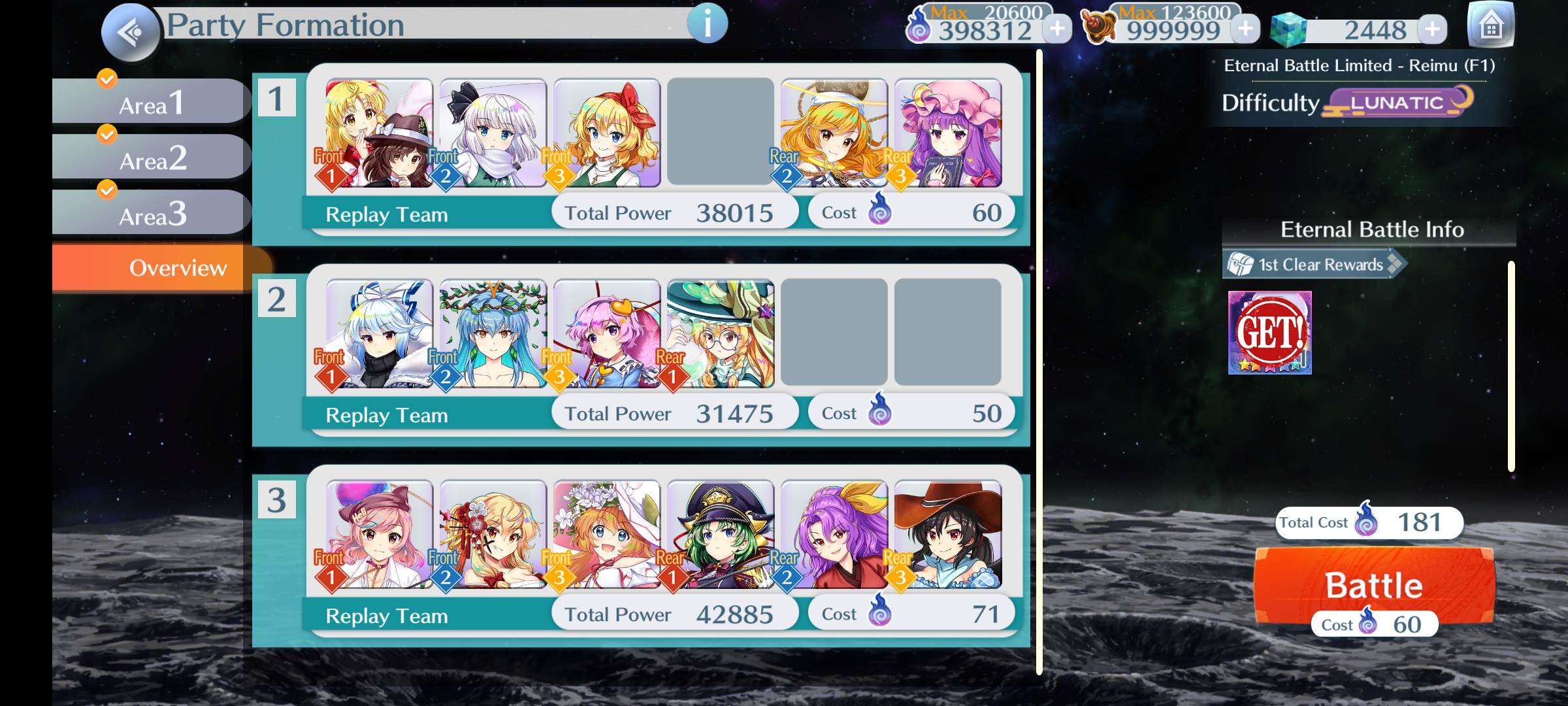 У меня такая: junko l1, yuyuka l1, cirno в доспехах. Нужно, чтобы все карты были в аое, кроме ульты, а ульта если в соло летит, то чтобы персонаж последним ходил (у джунко charge) .