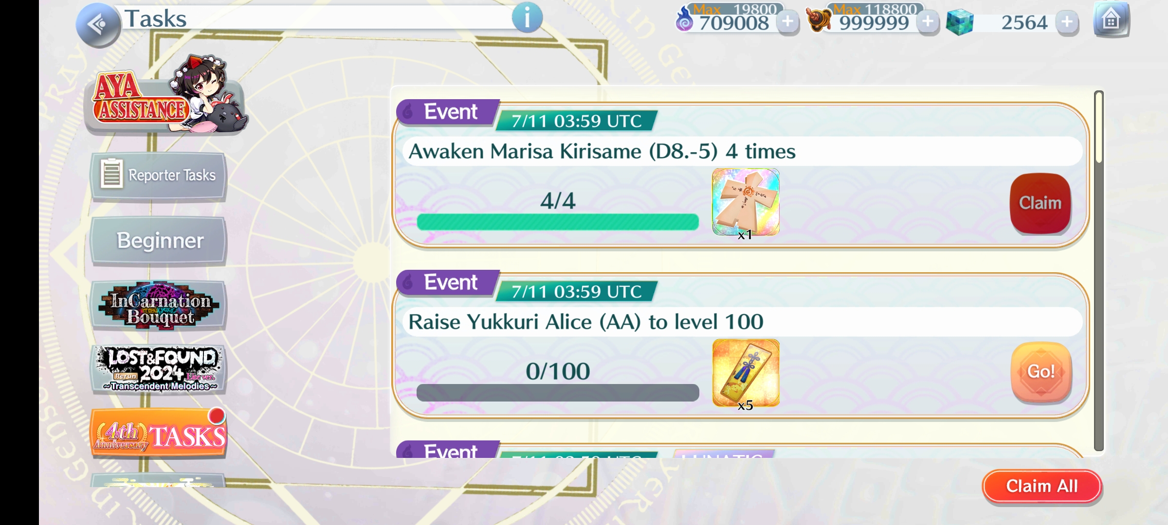У меня рейм юккури в 2 раза больше, чем марис нападало, надеюсь, не будет такого, что у реймы станет максимум удачи (если он существует), а у марисы останется 40-50.