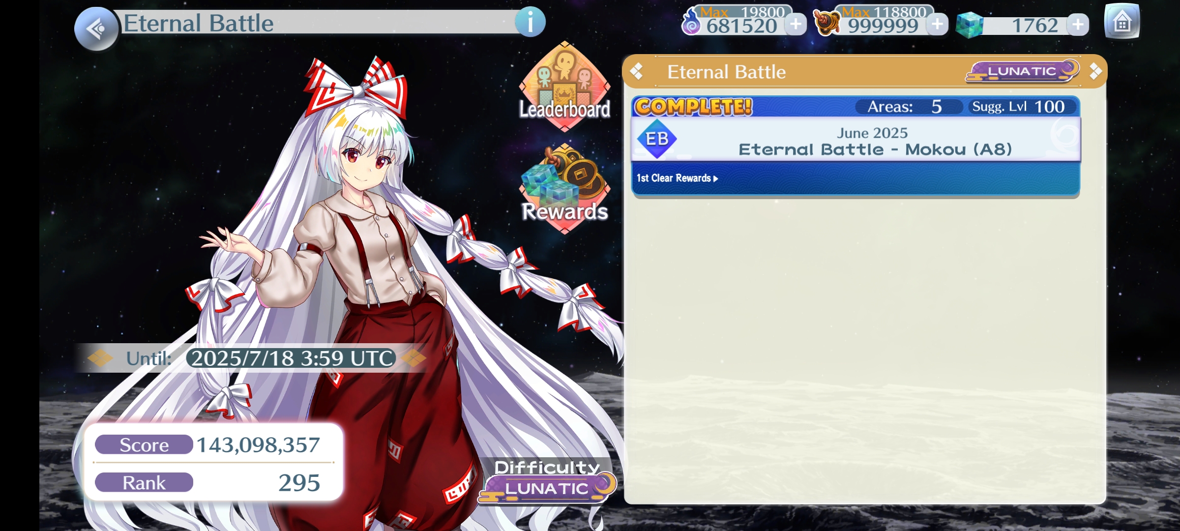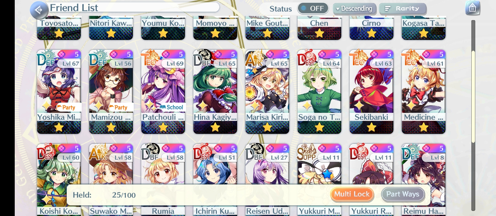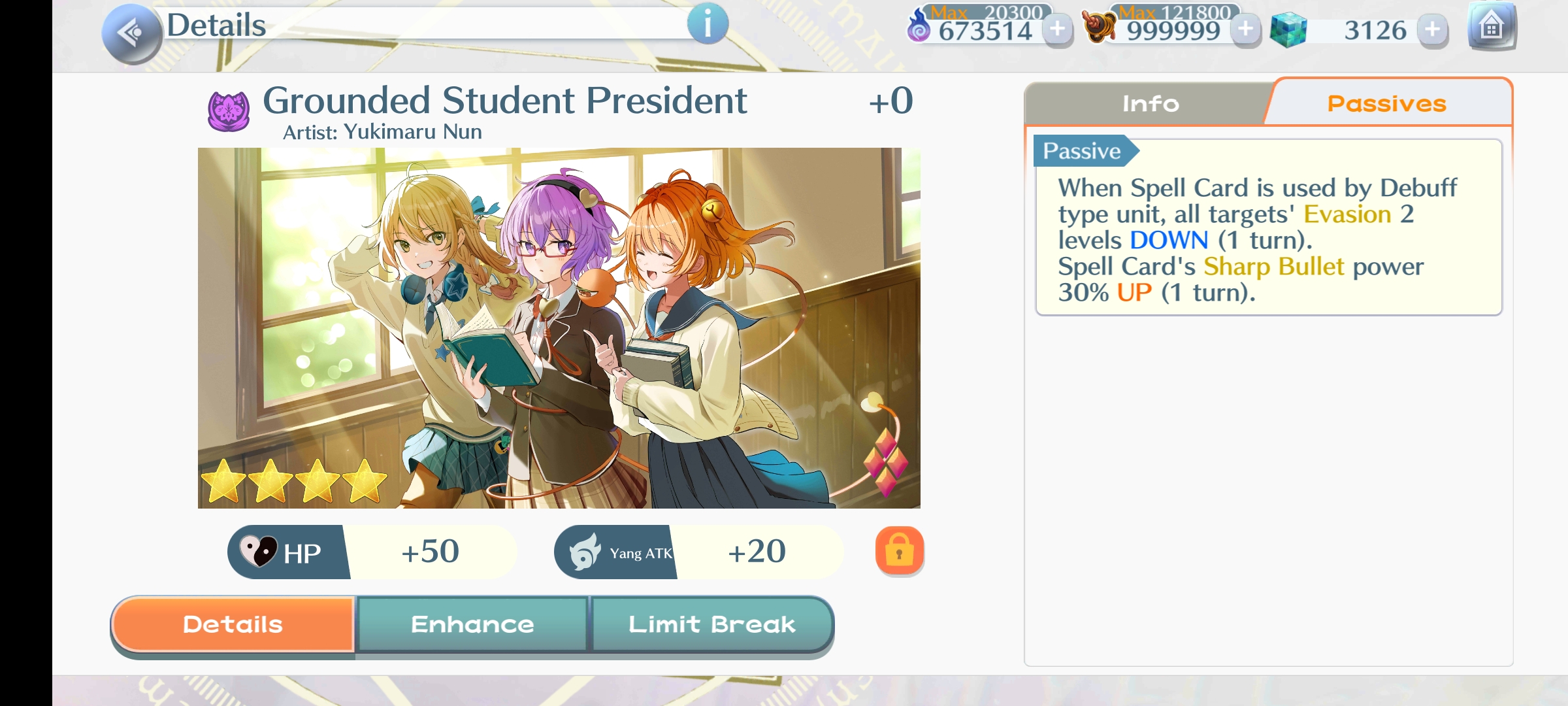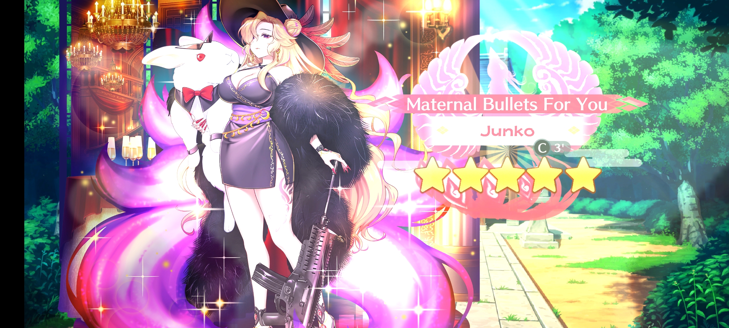 Бтв, задумлся, кого крутить первым джунко или ююко и оказалось, что джунко прям супер имба уровня генгетсу и мугетсу и даже лучше за счет стана и no-element ульты. У неё 3+3+(3+3 с элементов) брейка с аое карты +3 слепоты со скилла, стан 100% с 3+3+(3+3) брейками на соло карте, и ульта по очереди все барьер статусы накладывает и брейкает. Решил, что касен>джунко>ююко.