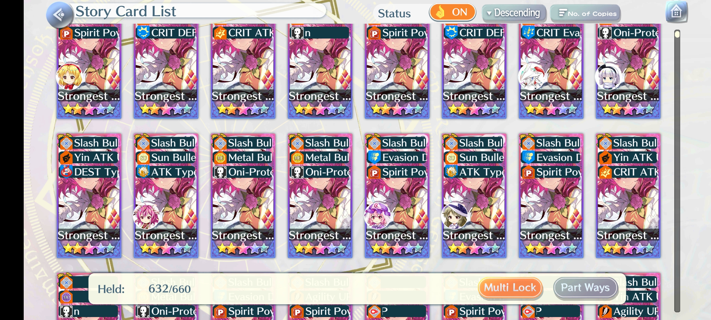Бтв, карточек хороших намного меньше, чем в тот раз. Вот вся годнота моя (но я и фармил мало из-за фарма кучи ивентов, water ex, сюжетки на карточки на крутки).