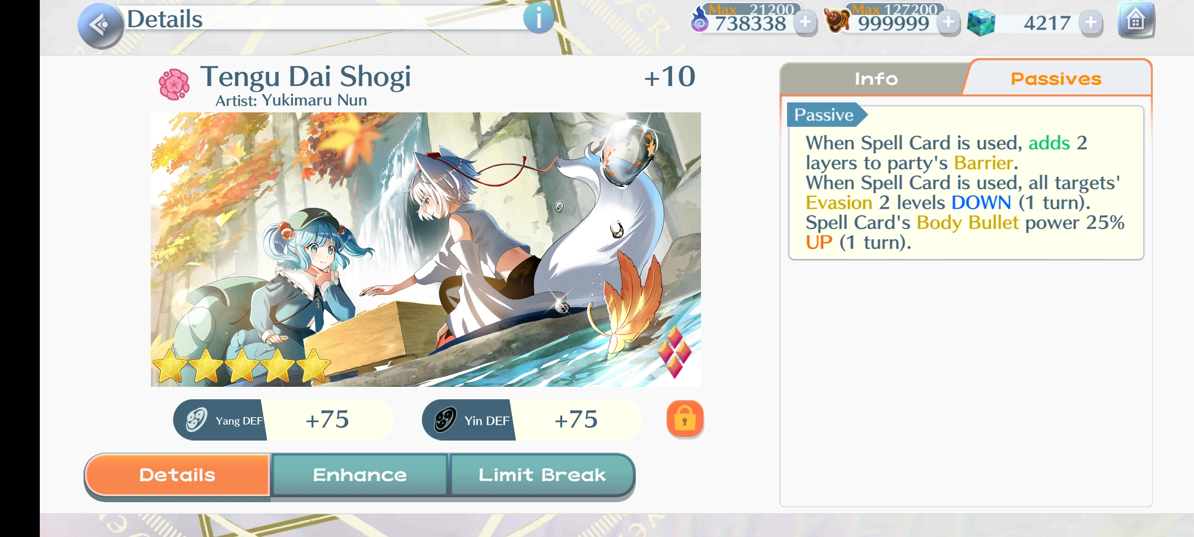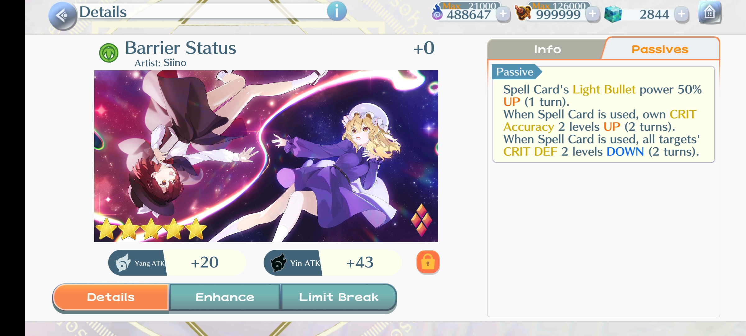 У Ремилии, для сравнения, есть и урон в % с жидеих пуль, который, как я понимаю, перемножается с обычным бустом урона у, например, марисы новогодней, есть инь атака 2 на скилле, а на ульте инь защита 2. Т.е. она целых три параметра разгоняет (хотя полезность инь защиты 2 тоже не велика).