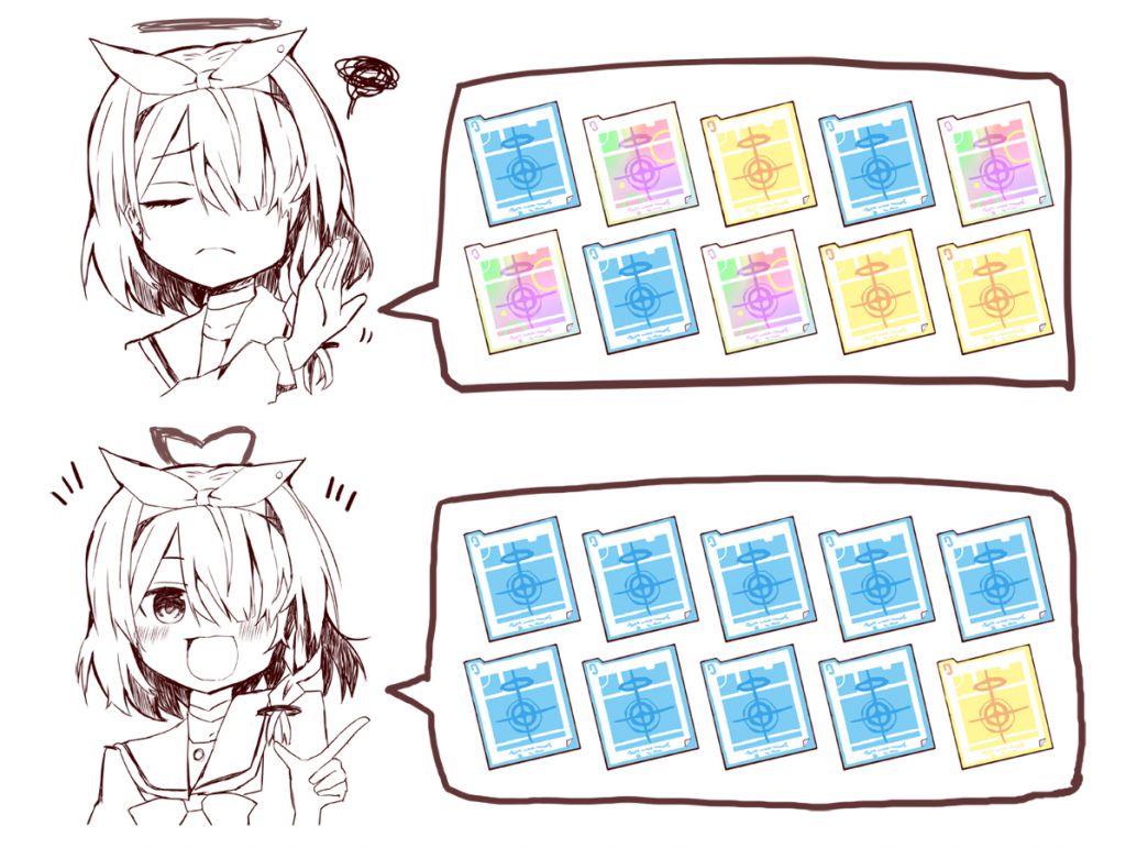 > увидел как чувак убился об меня 5 раз подряд в ПвП > сдох сам 4 раза об одного чувака в борьбе за первое место > все четыре раза первым скиллом выпадала карточка Хошино