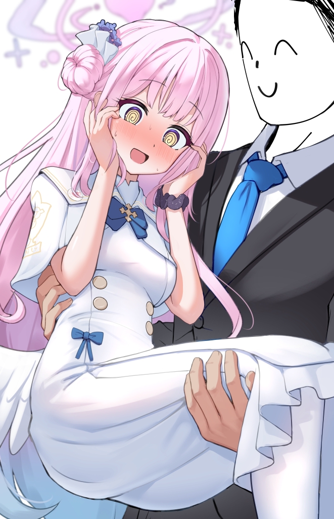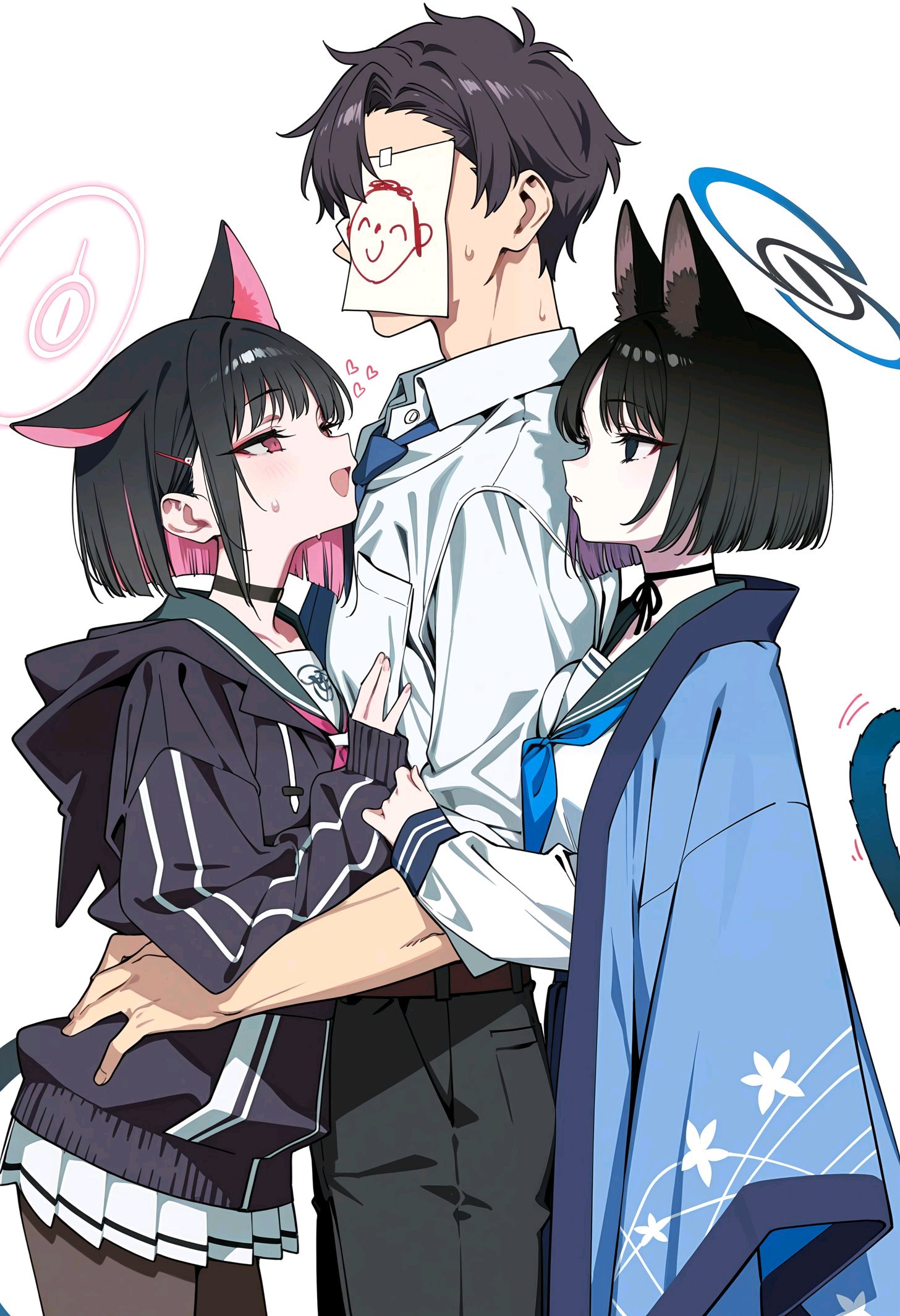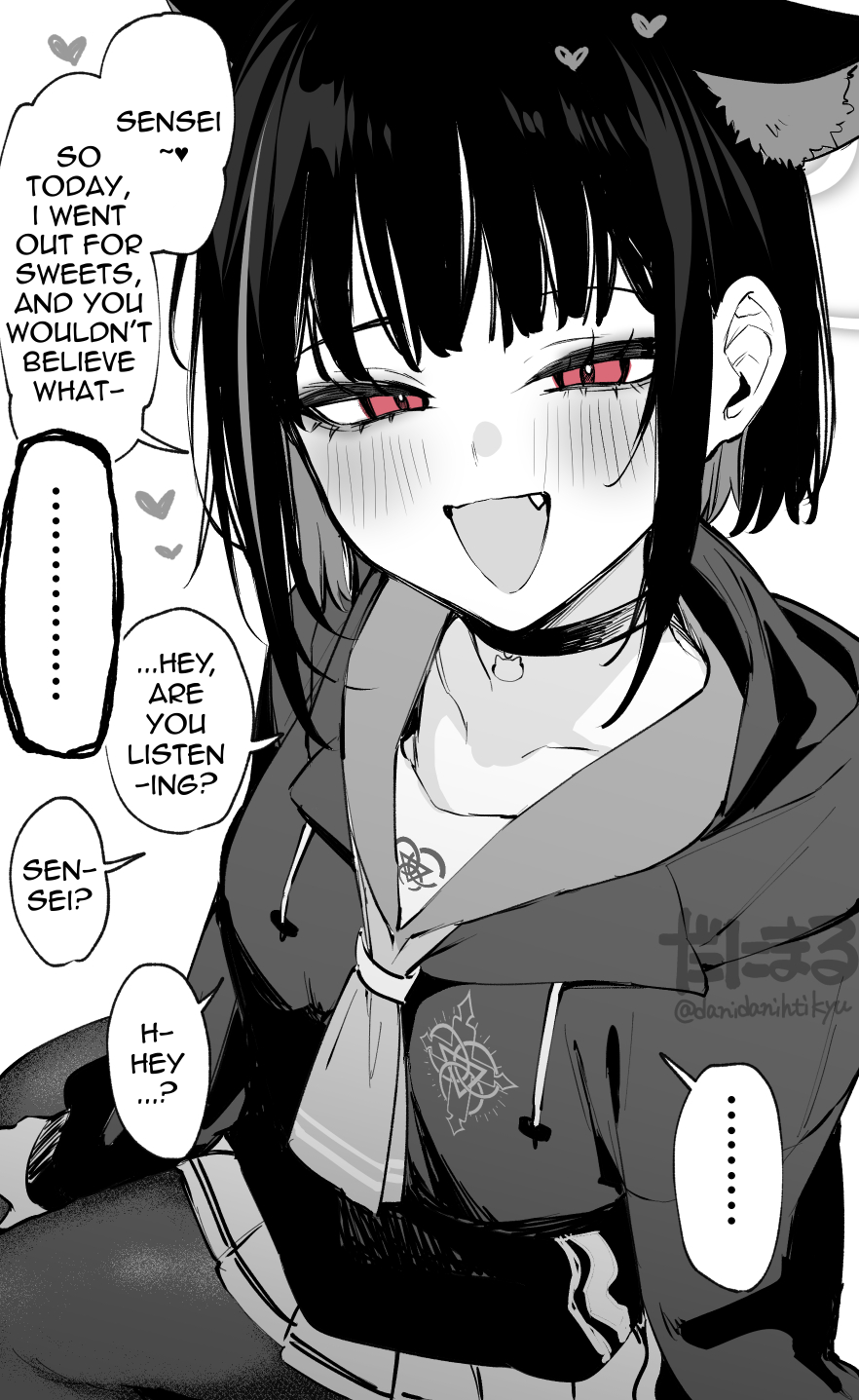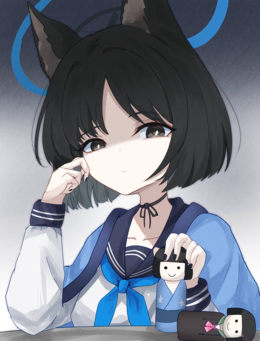 У обычных антропоморфных собачек/кошечек нимба нет, как нет его и у сенсея. Но по косвенным диалогам(Типа фразы, обращенной к Сене, что трупа она никогда не видела и вряд ли увидит) можно считать, что там тоже что-то нечисто. Но лор архива это такая вещь, которую никто не знает.