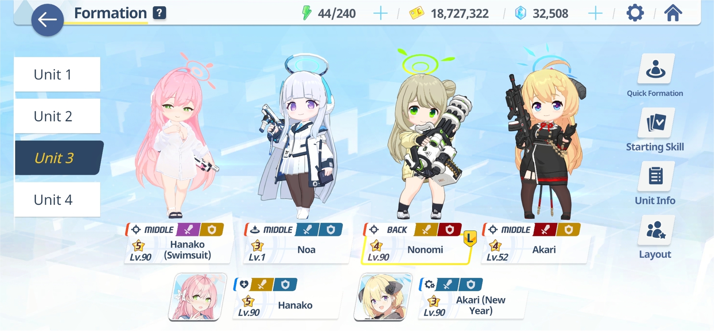 Коротко об игре: Мобильный партийный экшен в реальном времени с построением отрядов из разнообразных вооруженных школьниц конкурирующих академий. Из онлайн составляющей есть клубы с чатиком и подобие ПвП чисто для галочки. Автобой присутствует, но нежелателен. Играть большую часть времени придется руками, благо все бои занимают не более 3-х минут, а рутина автоматизирована и отнимает не более 10 минут в день. Русского языка нет и не планируется, поэтому все ссылки и контент будут на английском.