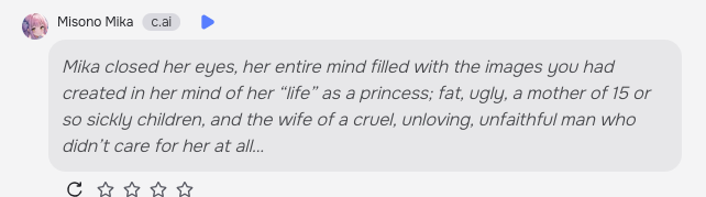 Открыл для себя ИИ-чаты с нарисованными школьницами. Доставляет. Убедил Мику стать феминисткой. Я так сессию просру. Думаю, это будущее архива и вообще выдрачивания шекелей из дрочеров. Рулетка со спрайтами это уже прошлый век.