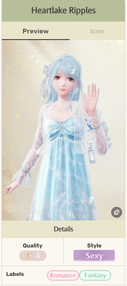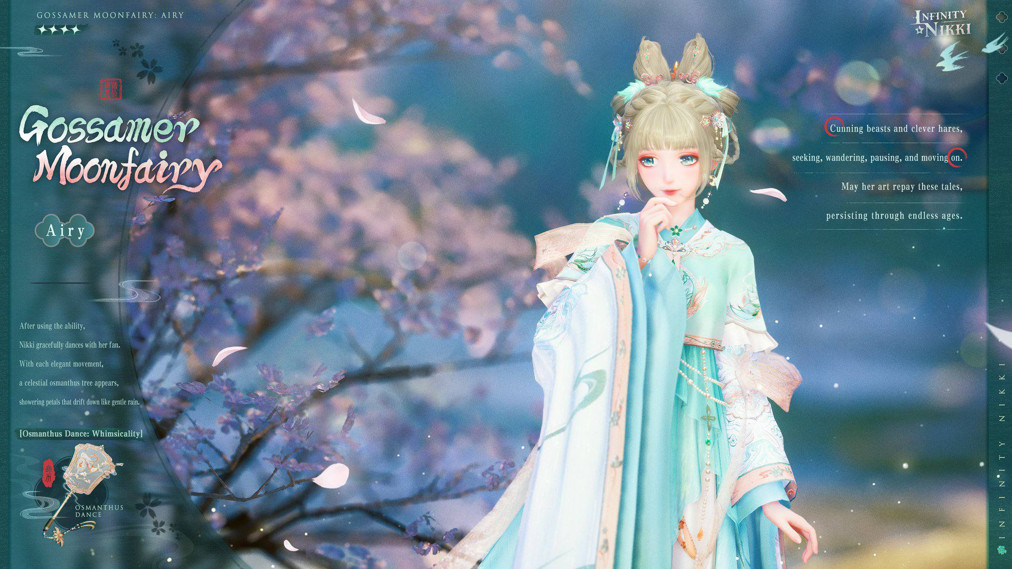 >Причудливый гардероб | Шёпот тумана >Основной атрибут: sexy >Наряд «Шёпот тумана» можно эволюционировать в костюм «Шёпот тумана: Тепло». Полностью прокачайте его, чтобы получить наряд «Шёпот тумана: Первая встреча». >Навык наряда >[Туманный вальс: Причудливость] >После активации навыка [Туманный вальс: Причудливость] Никки исполнит особый танец. Легко ступая на цыпочках, она будет следовать за клубящимся туманом, улавливая его ритм и наслаждаясь музыкой, скрытой среди деревьев.