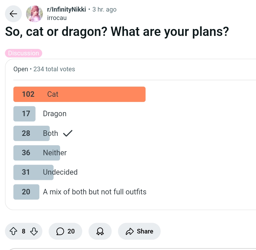 >>5138227 Тут уже даже такую статистику подвезли. Грустно всё это. 5-звездные наряды и правда слишком дорогие по круткам. Лучше бы сделали гарант 10 круток на вешь, тогда и большие наборы по 10-11 вещей были бы в радость. Ну и разнообразия не хватает. Где 5-звездные альтушки?