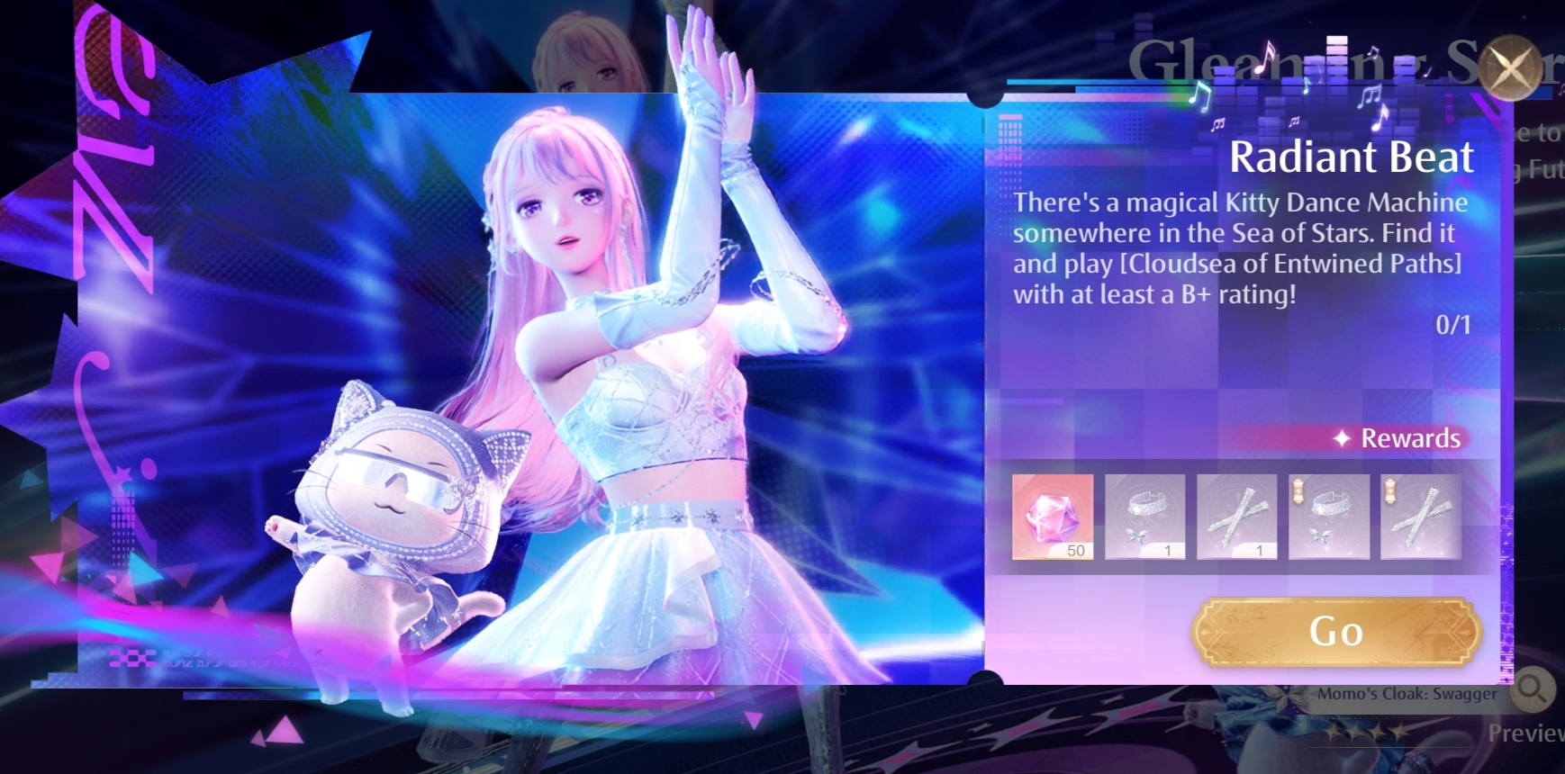 4зв награда за ивент - Blossoming Future Основной атрибут: Sweet Как получить Во время события «Сверкающий звездный свет» стилистам будут доступны 6 заданий. Завершение предыдущего открывает следующее. Пройдите их все, чтобы получить награды, включая четырёхзвёздочный наряд [Blossoming Future] и [Плащ Момо: Swagger].