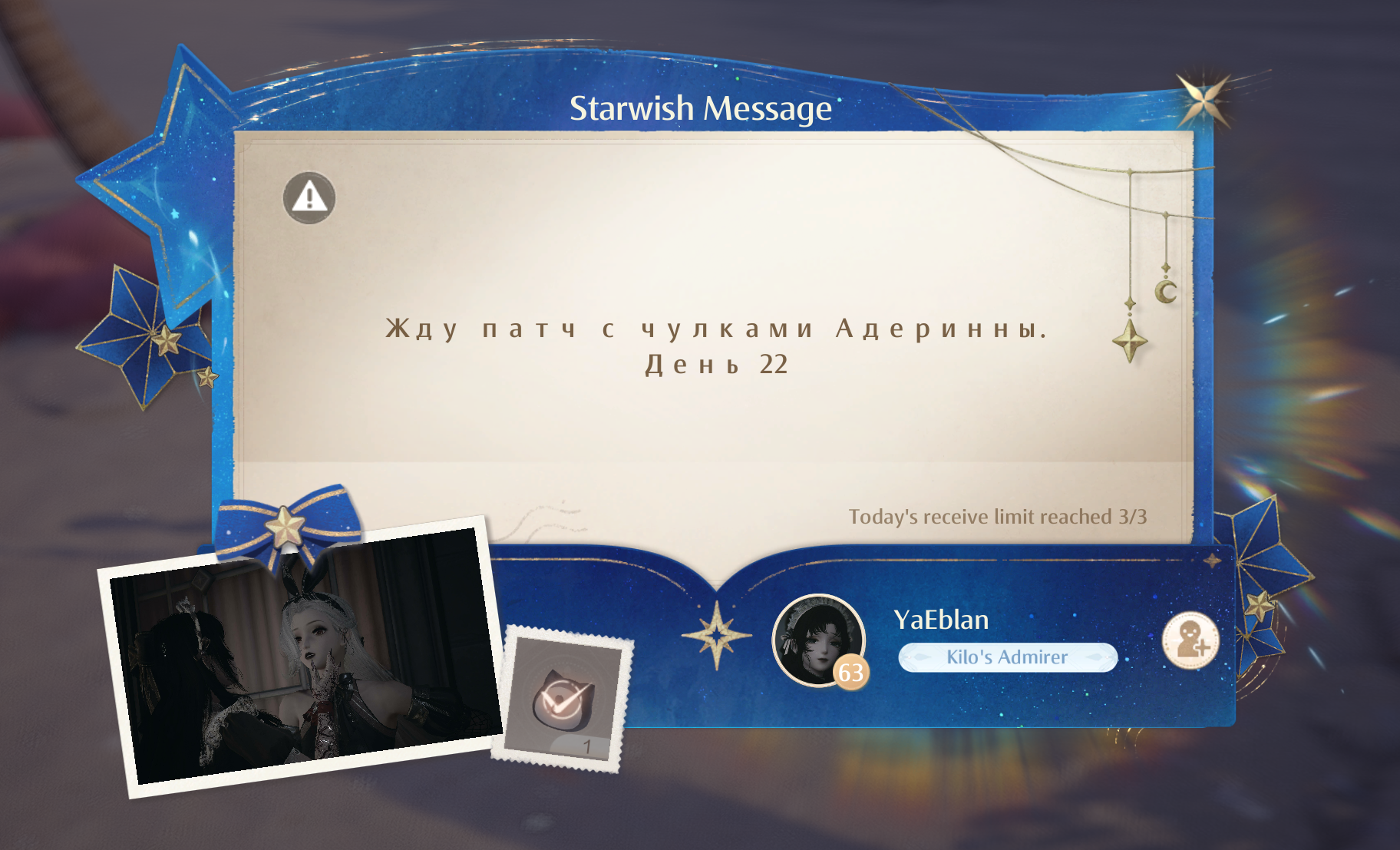 Чет пол года прошло, так ни одной пятерки и не кручу помимо журавля. Ну хвост забрала русалочий а потом поняла как обосралась когда узнала что он идет как отдельная юбка. В общем похуй на то что там инфолды в сюжете намутили, я его всё равно не читаю. А вот то, что перекрасы добавили - велико, пусть и чутка за пейволом. Всё равно чисто раз в патч захожу пофотаться и гачу покрутить
