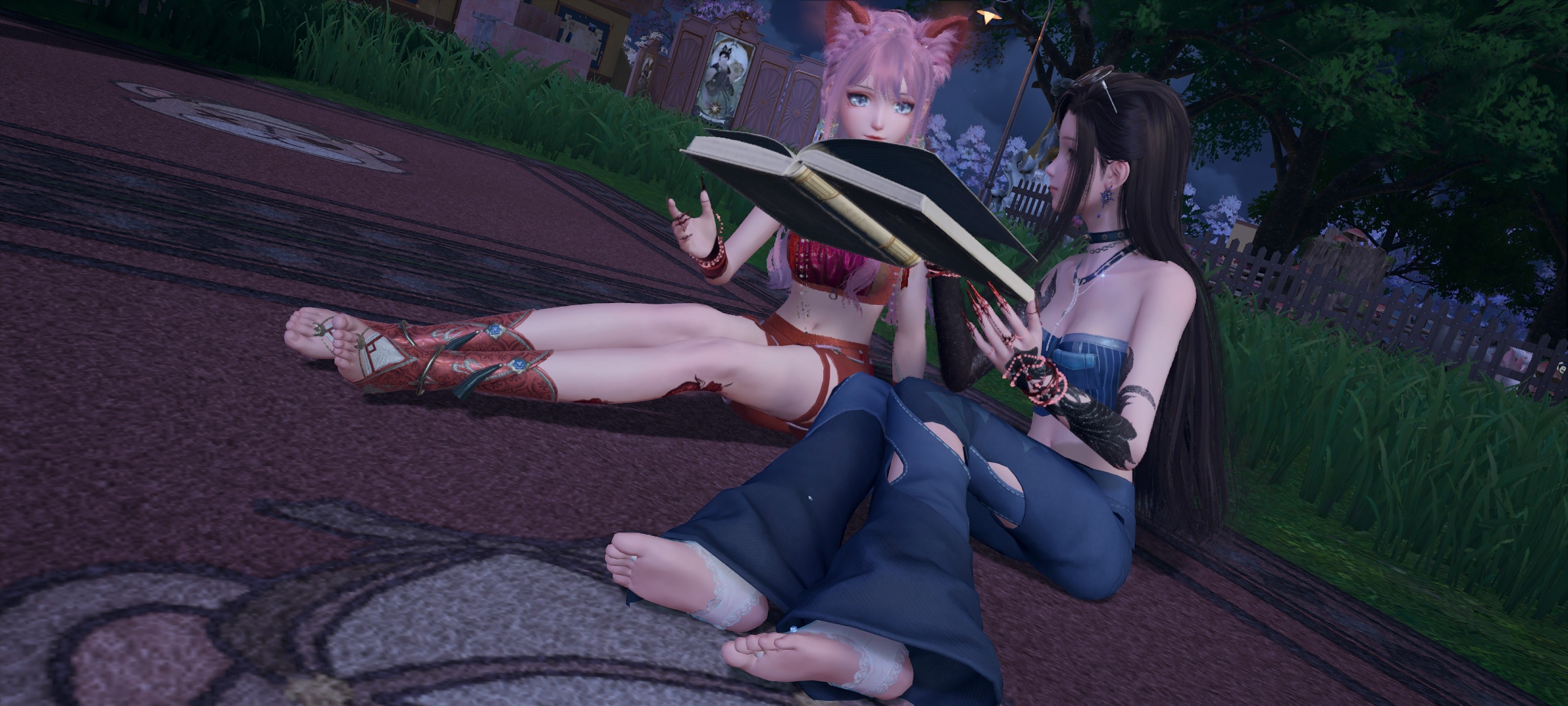 Тян некоторые нравятся, Навию вот только что я целенаправленно крутила, например, или вот Мявуика спукнулась с рандомролла и я на мотике катаюсь, потому что могу. Я бы всех переодела конечно, если бы мне дали, ну типа че Клоринда без штанов бегает, стремно.