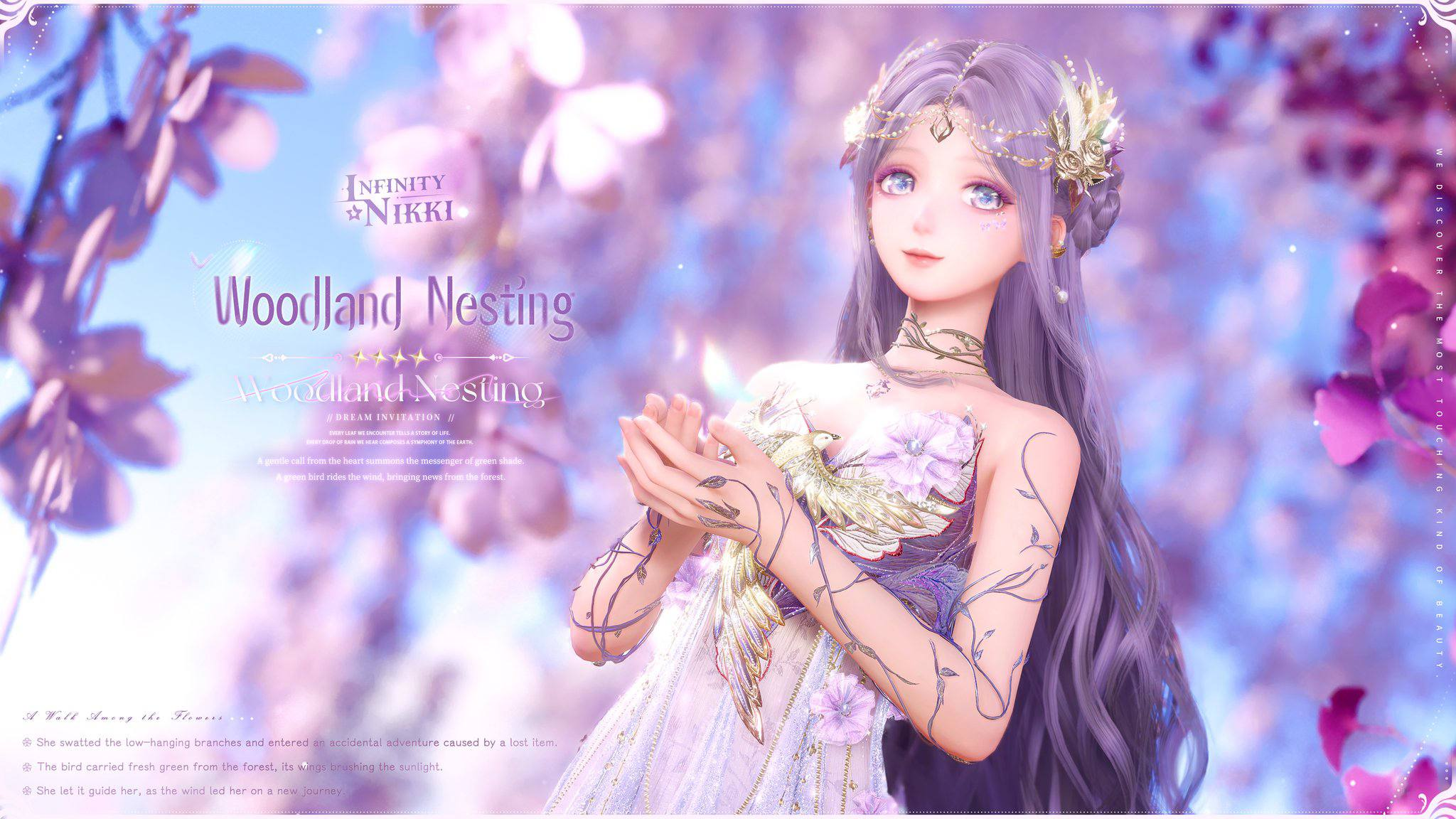 >♾️ Причудливый наряд | Лесное гнёздышко >Основная характеристика: Elegant >Она откинула нависшие ветви и шагнула в неожиданное приключение, начавшееся с потерянной вещи. Птица принесла с собой свежую зелень леса, её крылья касались солнечных лучей. Она позволила ей вести себя — и ветер направил её в новое путешествие. >🕊️ Способность наряда >[Песнь ветра: Причудливость] — мягкий зов сердца призывает посланника из зелёной тени. Зелёная птица несётся на ветру, принося вести из леса. После активации способности Никки призывает зелёную птицу. Она легко парит в потоке ветра, садясь на кончик лианы, готовая мягко поделиться последними лесными историями с близкой подругой.
