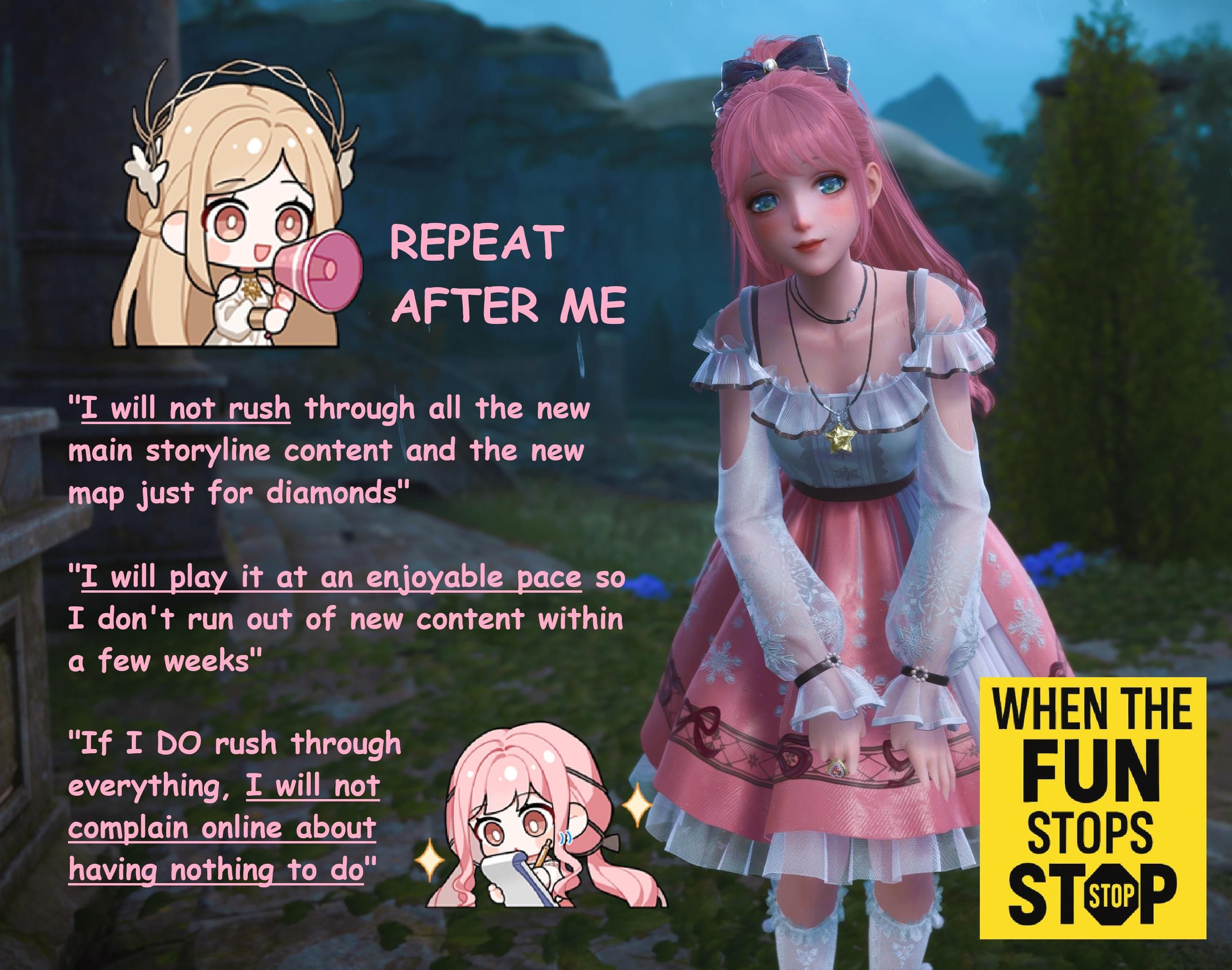 Кто не успел квест стилистов и прочие ивенты доделать - начинайте уже сейчас, ленивые жопы, время обновления серверов будет увеличено с выходом патча, сервера отрубят на два часа раньше и время ивентов будет скооректировано и сокращено. Дадут сверху 200 алмазов за обслуживание. Потом не нойте, что вас не предупреждали.