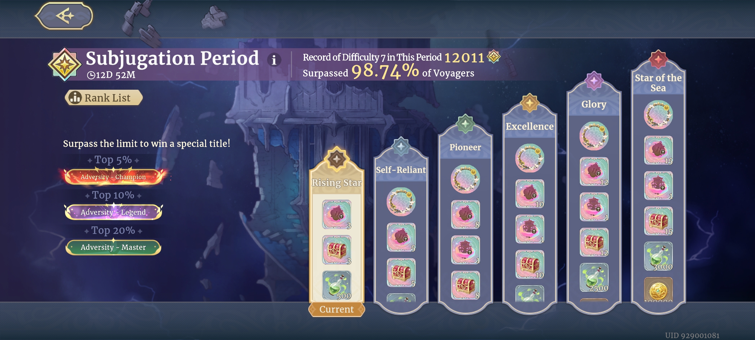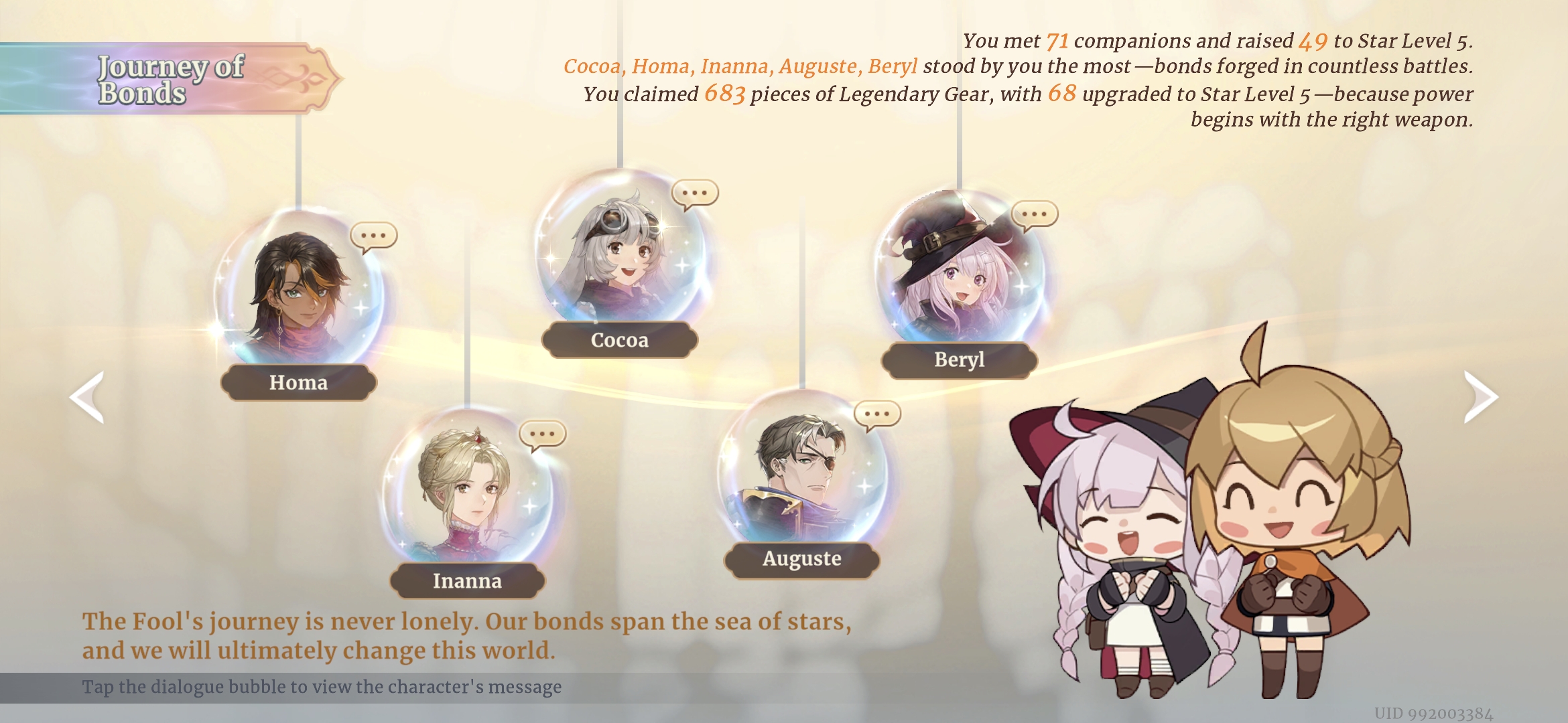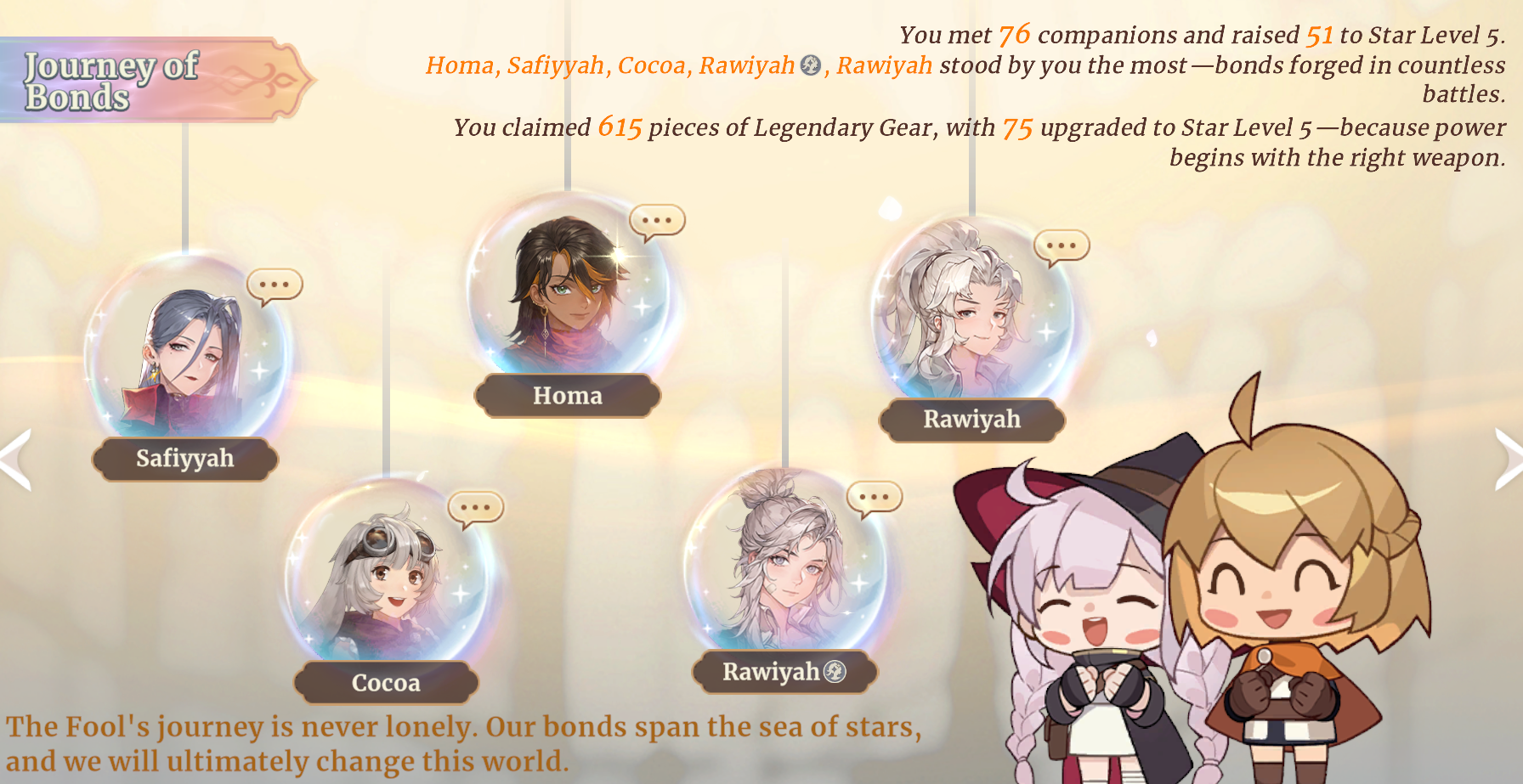 Вот сейчас у меня ростер - Рико, инанна, Луффи, СП Сафя, Хома, Лювата. Из которых ну никак не собрать 2 сильные команды под Адверсити. Если бы только рандом сжалился и дропнул что-то полезное, история могла быть совсем другой.