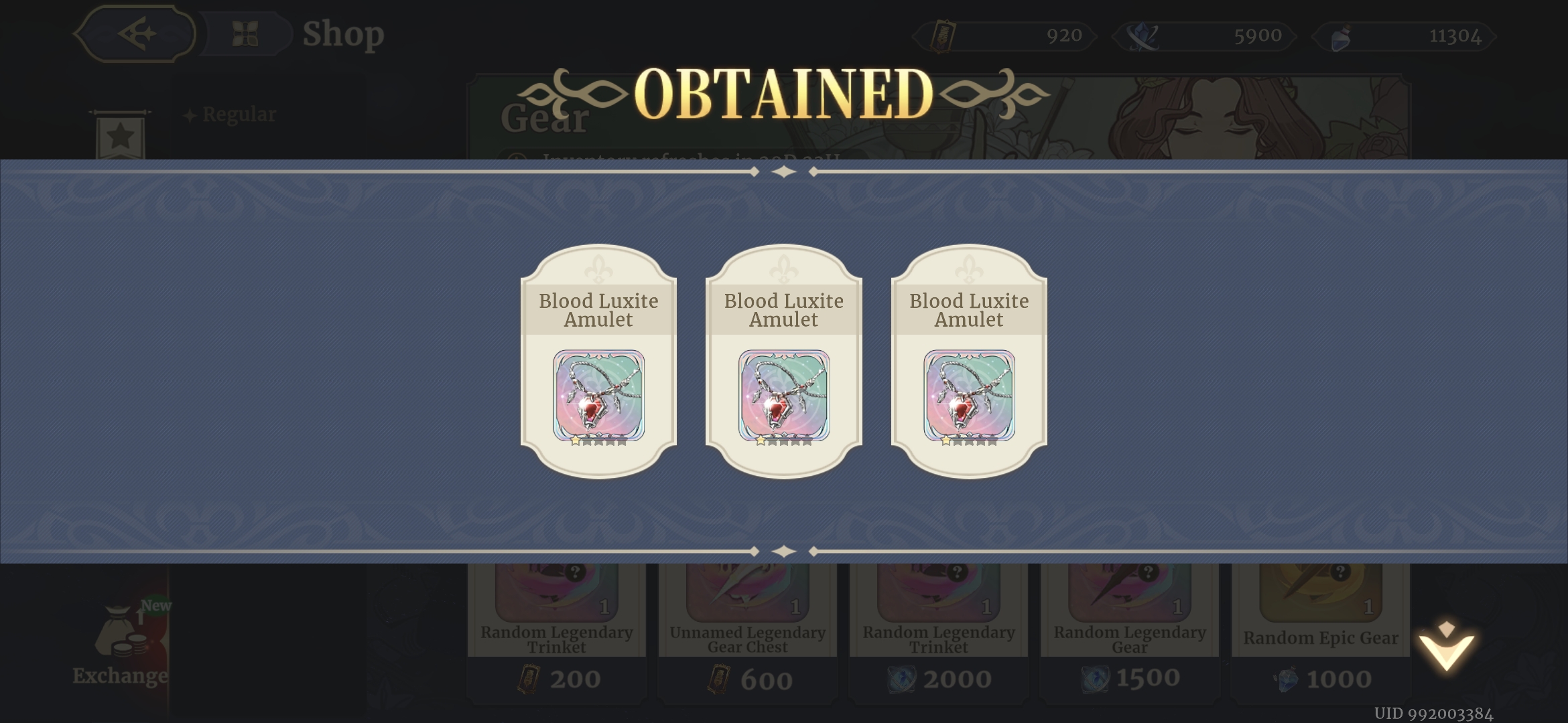 >>5570843 Каждому игроку рандомом к аккаунту ставится выпадение 1% шанса на две из топтир шмоток списка. Мне например выпало зеркало и кольцо телепортации, наоборот огненных колец и книжек у меня 5 штук, но зеркало и телепорт только одно.