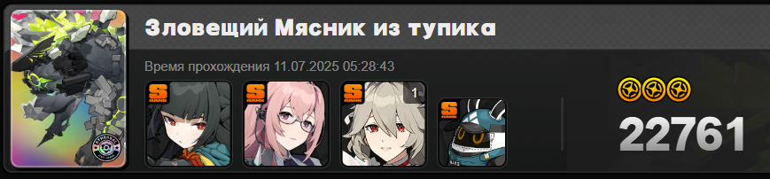 >пудж колдун доебал пиздец, слишком муторно То ли я слепой, то ли у него атаки из инвиза не подсвечиваются. Это похоже на какой-то эксперимент по убиранию крестиков из Шиюй. И вообще, Мясник не всегда одинаково бой начинает. Иногда вместо жёлтой атаки может начать сферу кастовать. Ну и ещё сигна Грейс на Янаги не очень с бафом на аномалию. Плюс баф даёт ещё срезку защиты в 15%, что не очень хорошо сочетается с пробитие, которого с Риной и так много. Поставив близнецов на Янаги вместо сигны Грейс сразу +2-3к получилось.