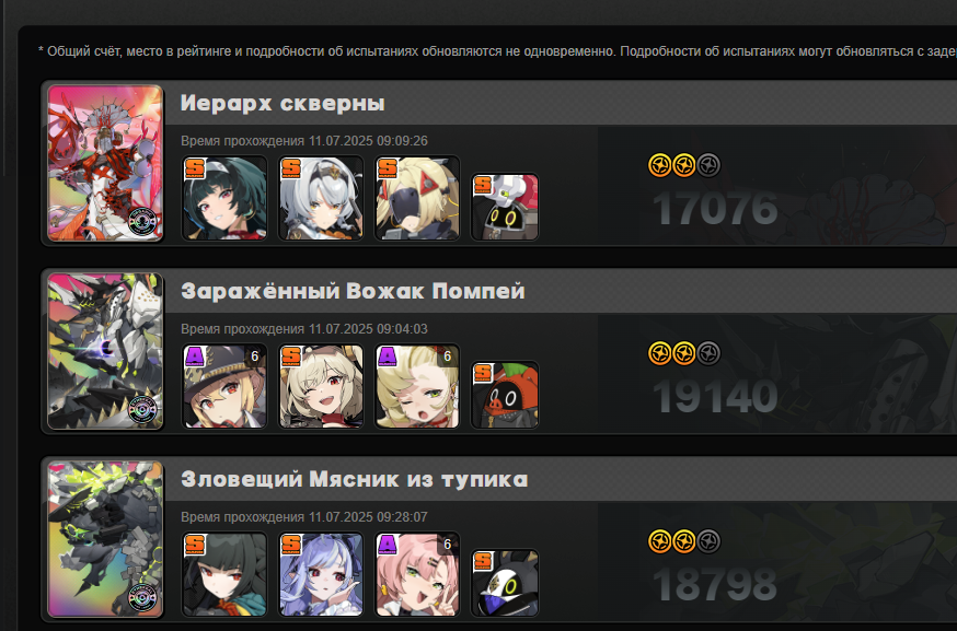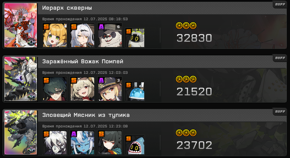 У меня только Мияби 3 звезды делает, остальные пачки до нее не дотягивают. Самое большое разочарование это Исюань, дамаг средний, а когда адреналин заканчивается, то лишь с руки остается бить.