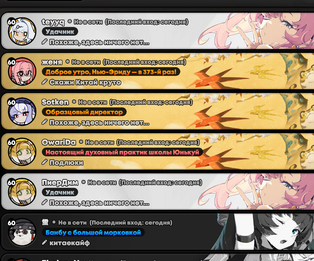 >>5204359 задушился каждый день монотонно заходить на Мияб в арты, нажимать 1 холду и выходить из игры так на протяжении большей части патча. +дохуя ивентов срут, которые в большинстве говно + в гаче прикладывало каждый патч очень сильно, по стате акк считается менее удачлив, чем 97% пользователей, все вместе довело до дропа и чет снова перехотел, нах сюда вообще пришел, бб
