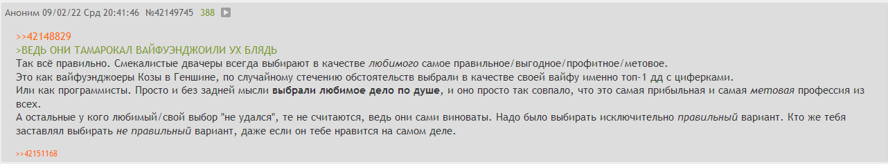 >>5266378 Ну так сюда утек самый цвет доски - проткнувшиеся геншином обиженки-трайбалисты, обезумевшие кумеры и юшкоодебилевшие инцелы. Главная ЦА Писевора, короче.