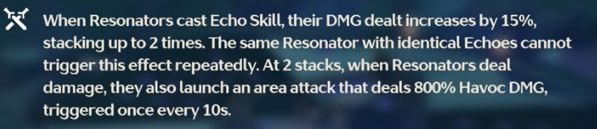 Понять не могу, в чем суть баффа. Если я на любом персе сделаю каст эхо, то у меня будет +15% элем урон? Если я сделаю два раза, то +30%? Эти стаки пермаментны? Короче, объясните!