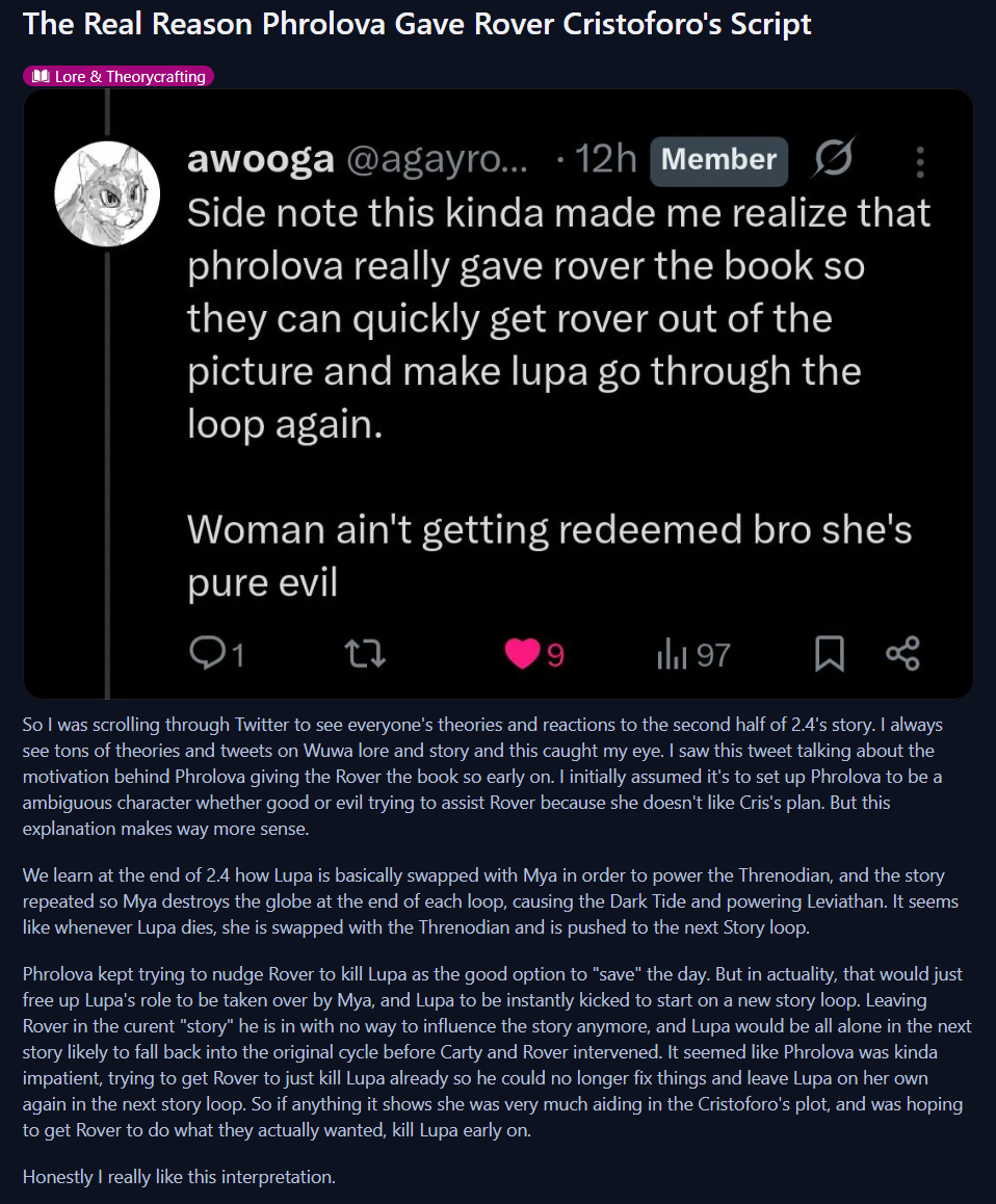 >>5273515 В начале 2.5 она на Шорах обследуется. Скорее всего, из-за того, что она нахваталась порчи Темного Прилива и Левиафану невероятно хуево (а ее происхождение с ним связано напрямую), ее невероятно колбасит и форте дестабилизируется. Поэтому ее пока что в разборках с рыбой точно не появится.