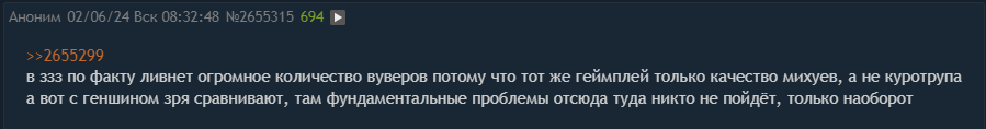 >>5273108 Да просто отдыхать от игры пока дают и таким способом можно в неё годами играть потому она тебя не заебывает и дает играть в другие игры а вот условный геншин меня прям люто убивал своими дейликами по 15 минут