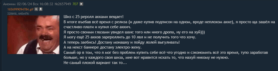 Но все в этом мире решают деньги. Поверь, ты бы даже рубля не потратил на таких персонажей, а просто скипнул, чтобы накопить на баб, как и большинство итт.