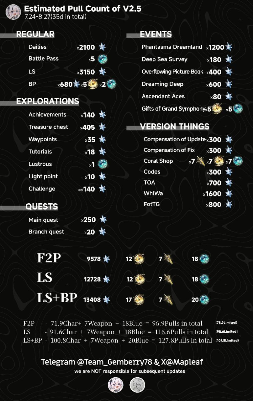>>5272213 Why is it so different from CN count? They counted 1 more reset of WhiWa + some bonuses only for CN players. Some info still not counted soo i’d say u to expect max 68-69 event pulls for F2P