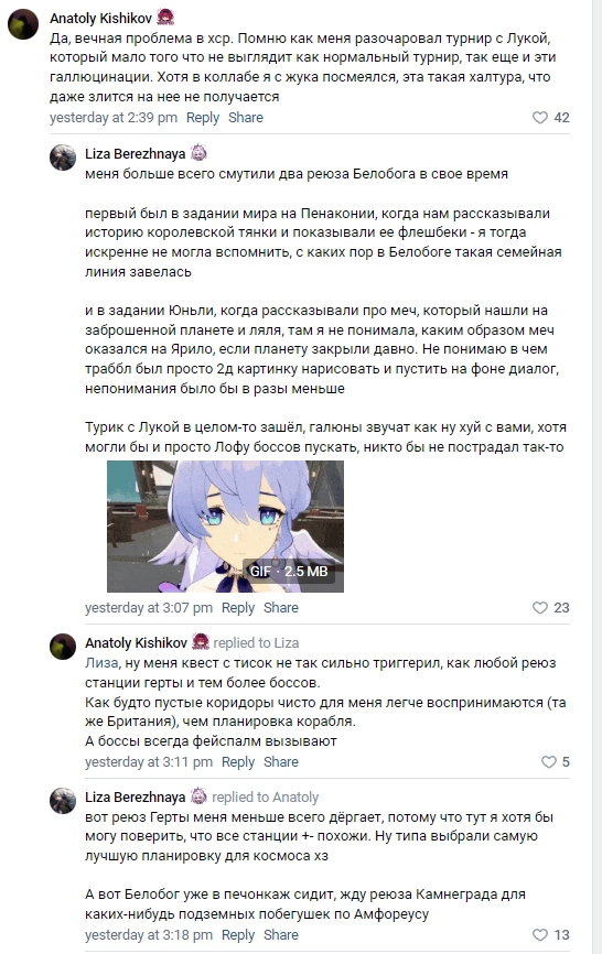Не, понятно, что Светляк запала на ГГ. Но Ляо вообще не раскрыл эту тему. Я ждал, что в 2.3 будут какие-то флэшбэки, а мне насрали на ебало тупорылым пранком.