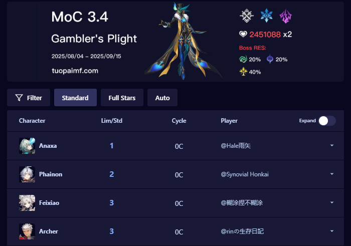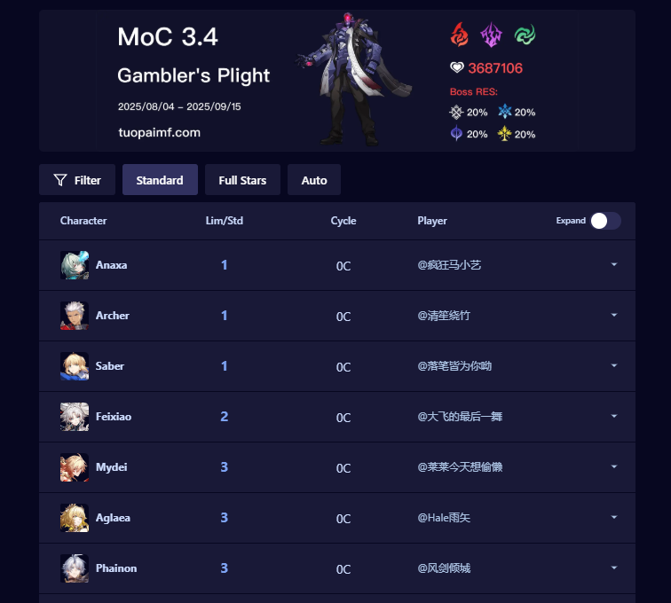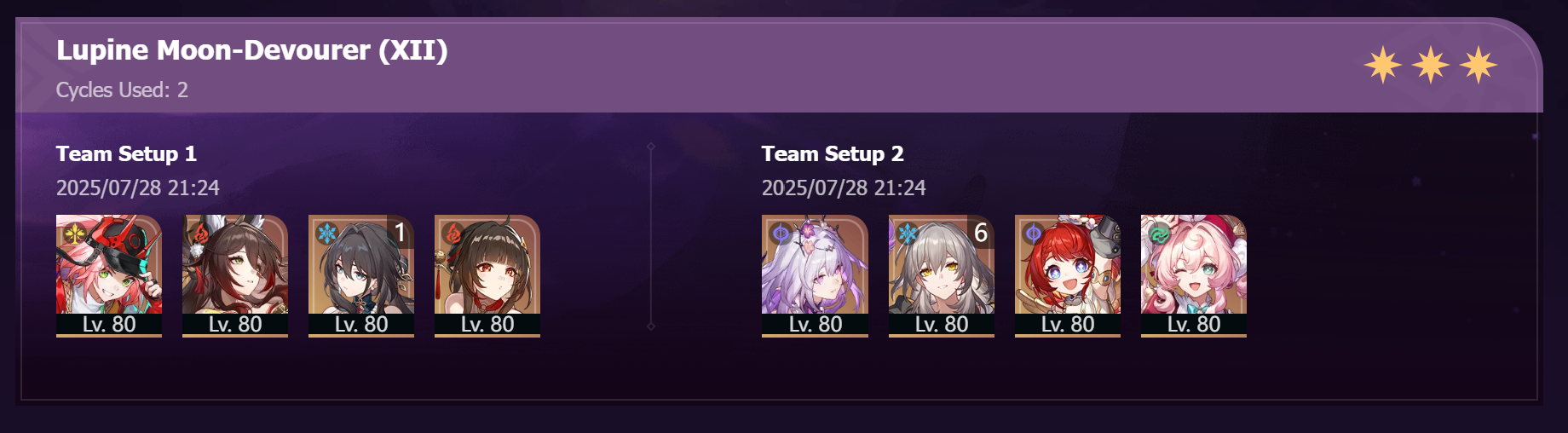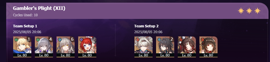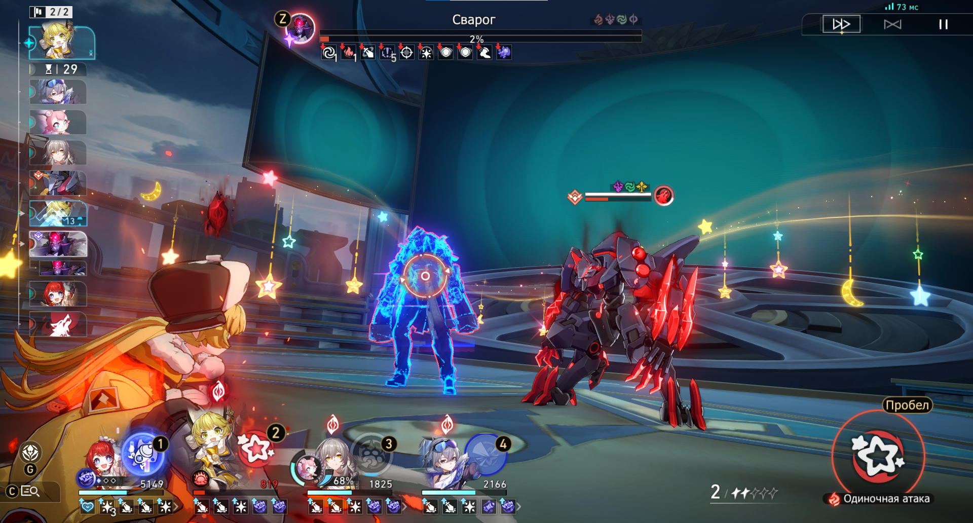 а чего обсуждать? дырка не интересная. от нечего делать потыркал разные составы: Одноглазый закрывает сторону за 1 цикл, ахерон - наверное на 4-5 (там все плохо), бабка за 2-2.5 (первую половину), за 2-3 (вторую). Раппа... за 8 гдет =D (первую половину) Герта все еще закрывает обе половины за ноль - на второй половине авентюрин не успевает засаммонить свои кубики (причем обе фазы). Думаю еще потыкаю условную фейсяо и что-нибудь фтпшное. Если что-то интересное найду - мб даже запишу. ККароче до АпоКа скучаемс. Надеемся на 4-ый режим.