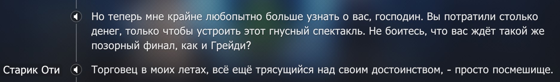 Прошел коллабный квест, кто там пиздел на него? Это же чистый постмодерн, отрубить озвучку в середине квесте и объяснить это немым кино это просто гениально, а англюсикоебы даже и не поняли, наверное, такой троллинг от Ляо. Другие метаприколы типа авторских прав на персонажа, подъебы скипальщиков и самоирония это круто. А в конце Ляо прямо от своего лица в виде Отто начал говорить. Короче, что бананы, что это ахуенные квесты, которые быдло как всегда не смогло выкупить и захейтило.