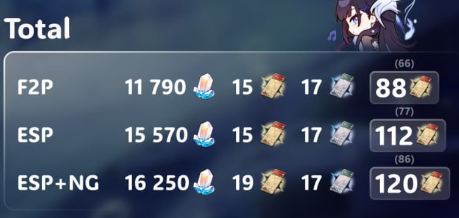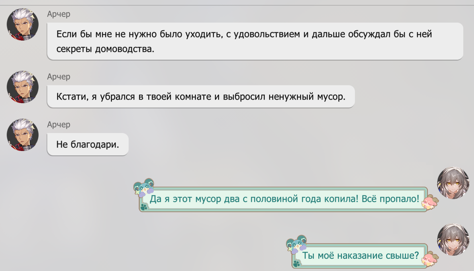 Да уж долго качать персиков до 80 конечно. Месяц фармил на Фаенона считай. А мне ещё надо Арчера, Циньюнь, Керидру, ГГ, Галахера и Жуньмая как минимум. Это я только к НГ раздуплюсь, а там уже новые пачки качать надо будет. Хорошо хоть 2300 смолы накопилось после ухода + бутылки. Не так анально как в Г, но я всё равно думал что побыстрее всё же будет. Кирену с Мартиком скипаю, всё равно ни круток нет ни пачек под них. Буду копить на новых имб в 4.0.